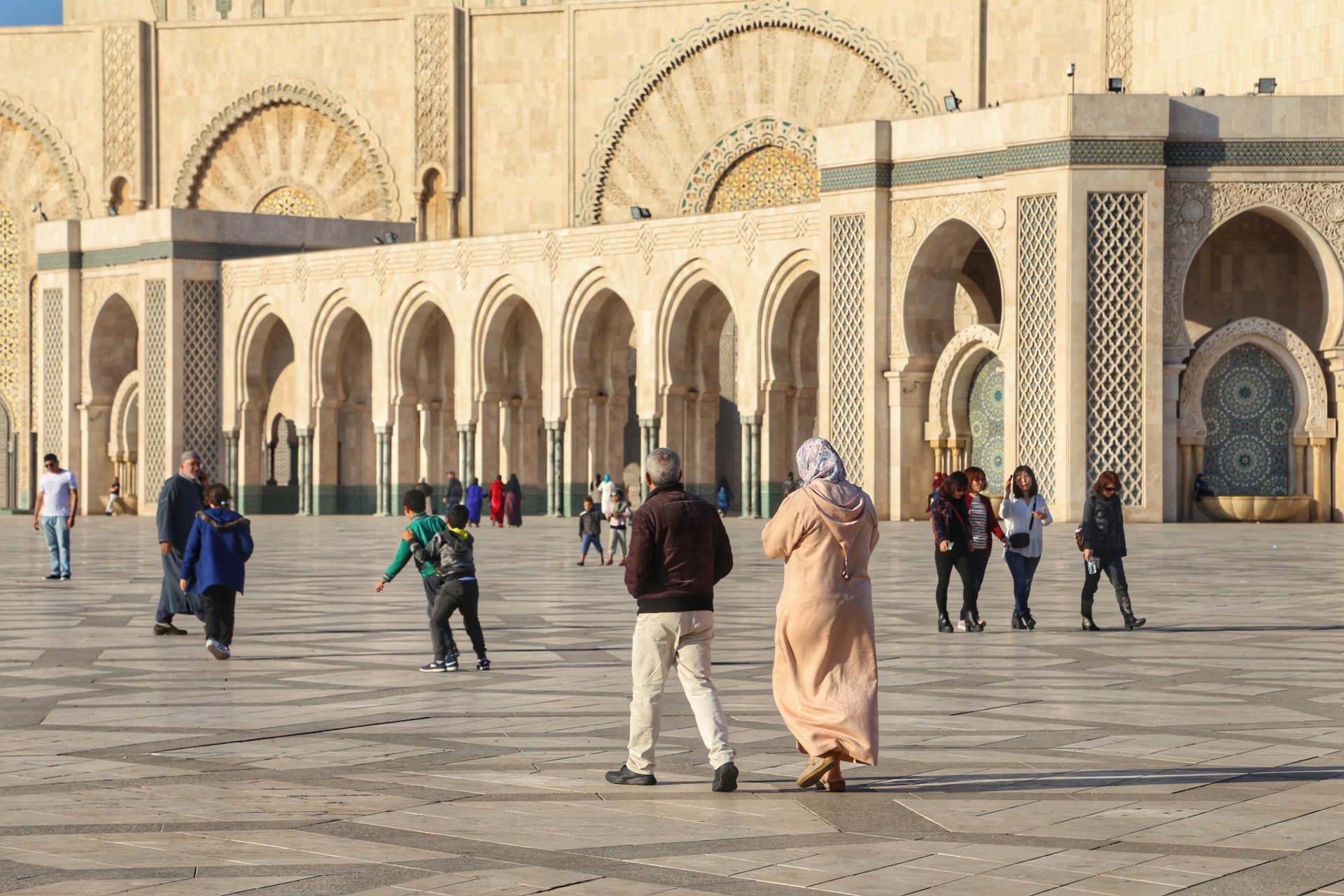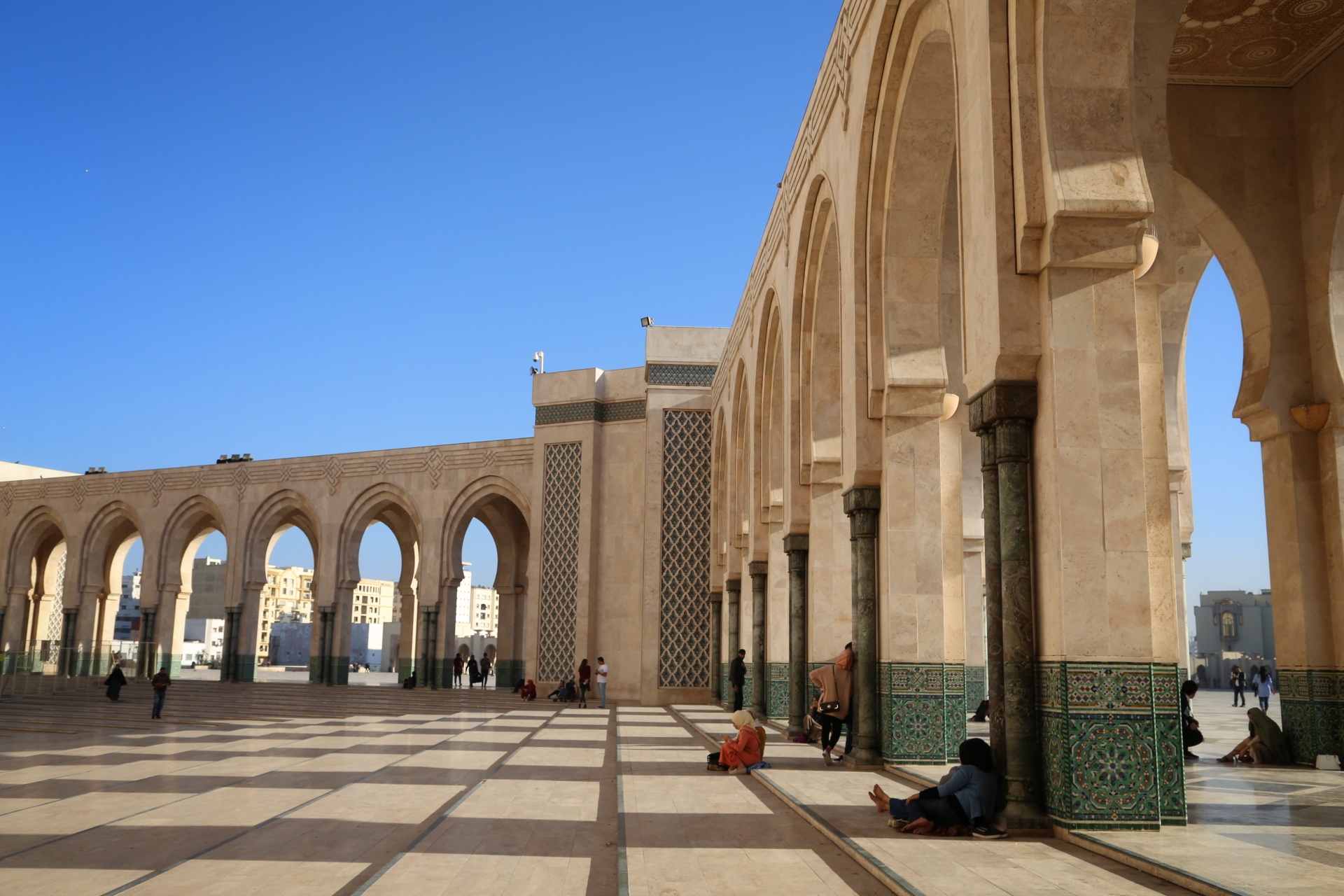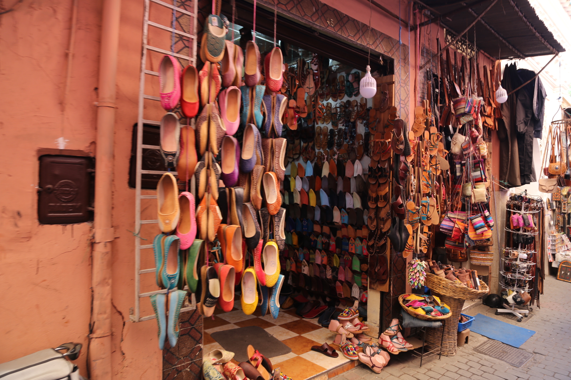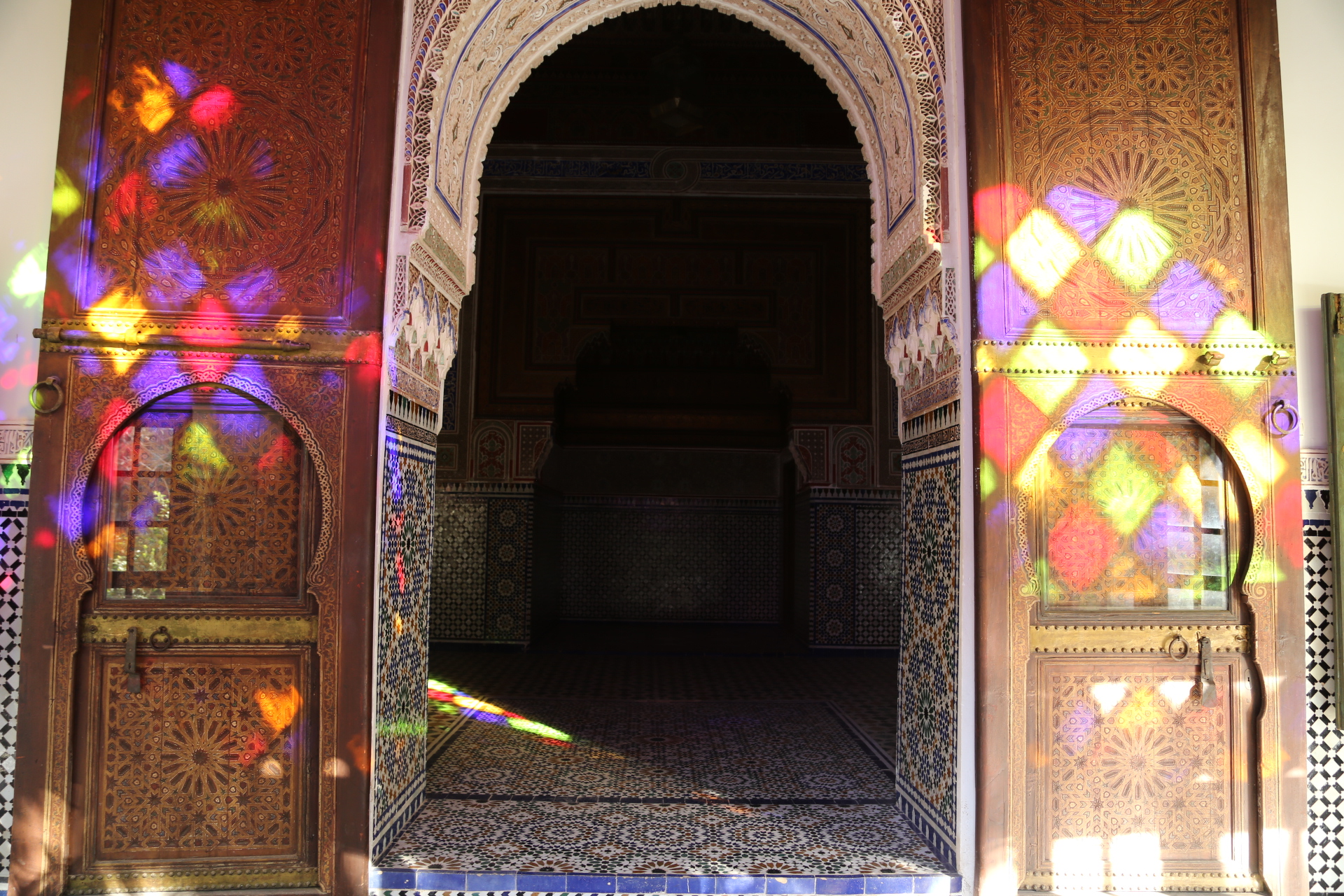 穿过古城墙,远处的宣礼塔就是库图比亚清真寺,同样是非穆斯林谢绝入内,巴伊皇宫离此不远,外表相当质朴,内饰却华丽耀眼,窗棂缕空,光影摇曳,有种一千零一夜的迷离色彩,而近在咫尺的杰玛夫纳广场简直“乌烟瘴气”乱七八糟,说不出的闹心,到咖啡厅拍个全景图算是到此一游罢了。