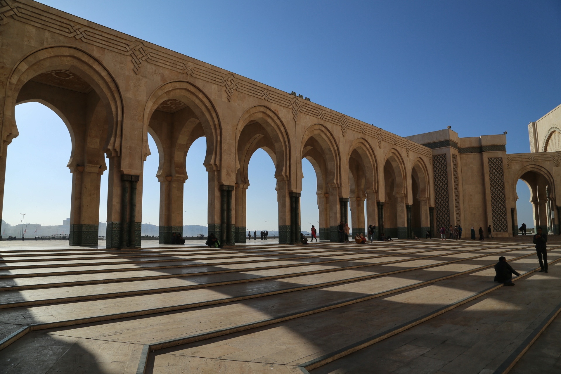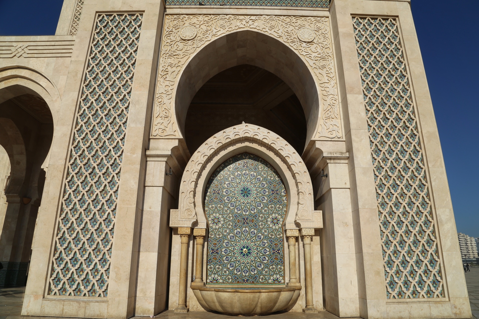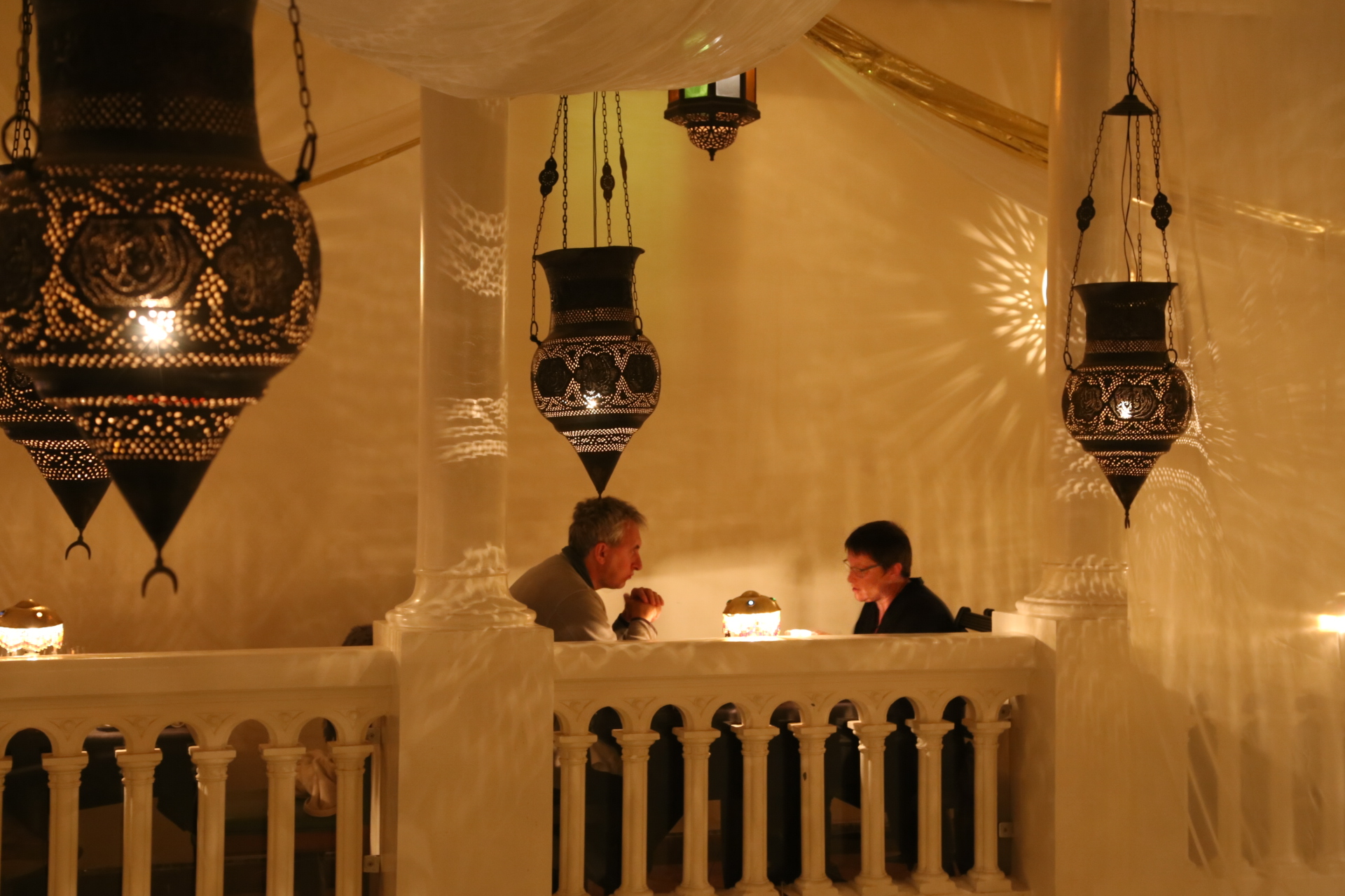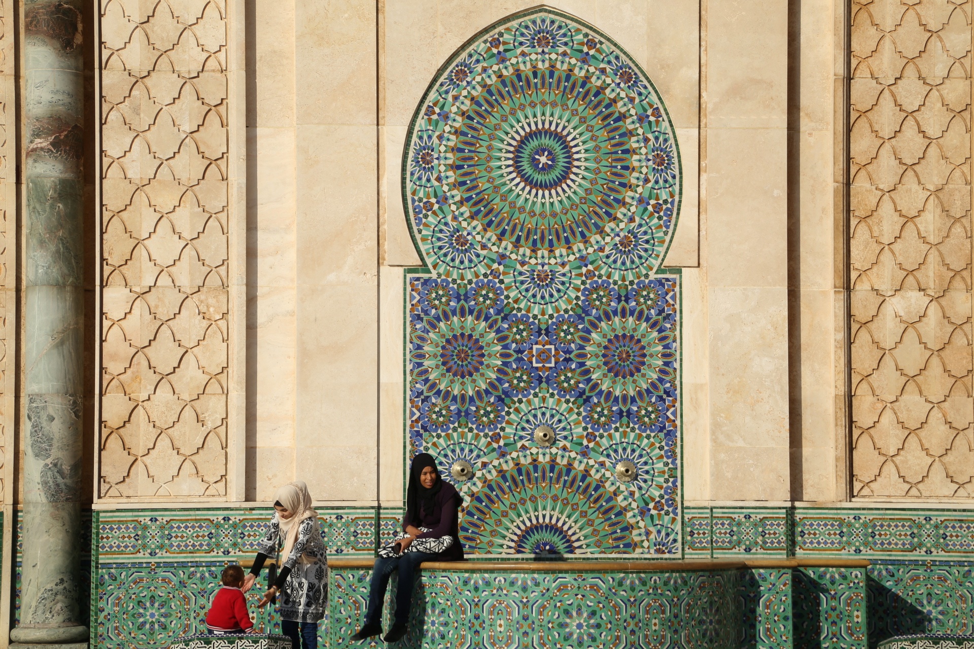 穿过古城墙,远处的宣礼塔就是库图比亚清真寺,同样是非穆斯林谢绝入内,巴伊皇宫离此不远,外表相当质朴,内饰却华丽耀眼,窗棂缕空,光影摇曳,有种一千零一夜的迷离色彩,而近在咫尺的杰玛夫纳广场简直“乌烟瘴气”乱七八糟,说不出的闹心,到咖啡厅拍个全景图算是到此一游罢了。