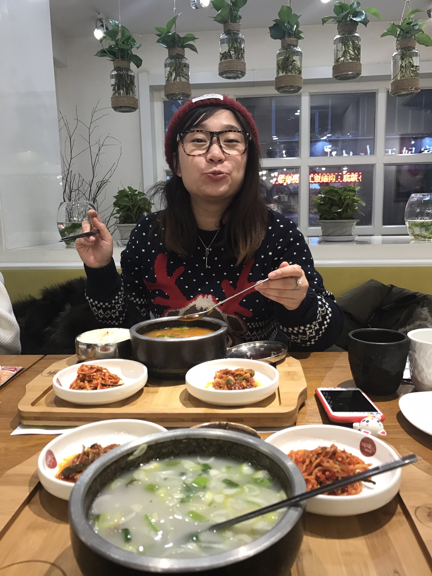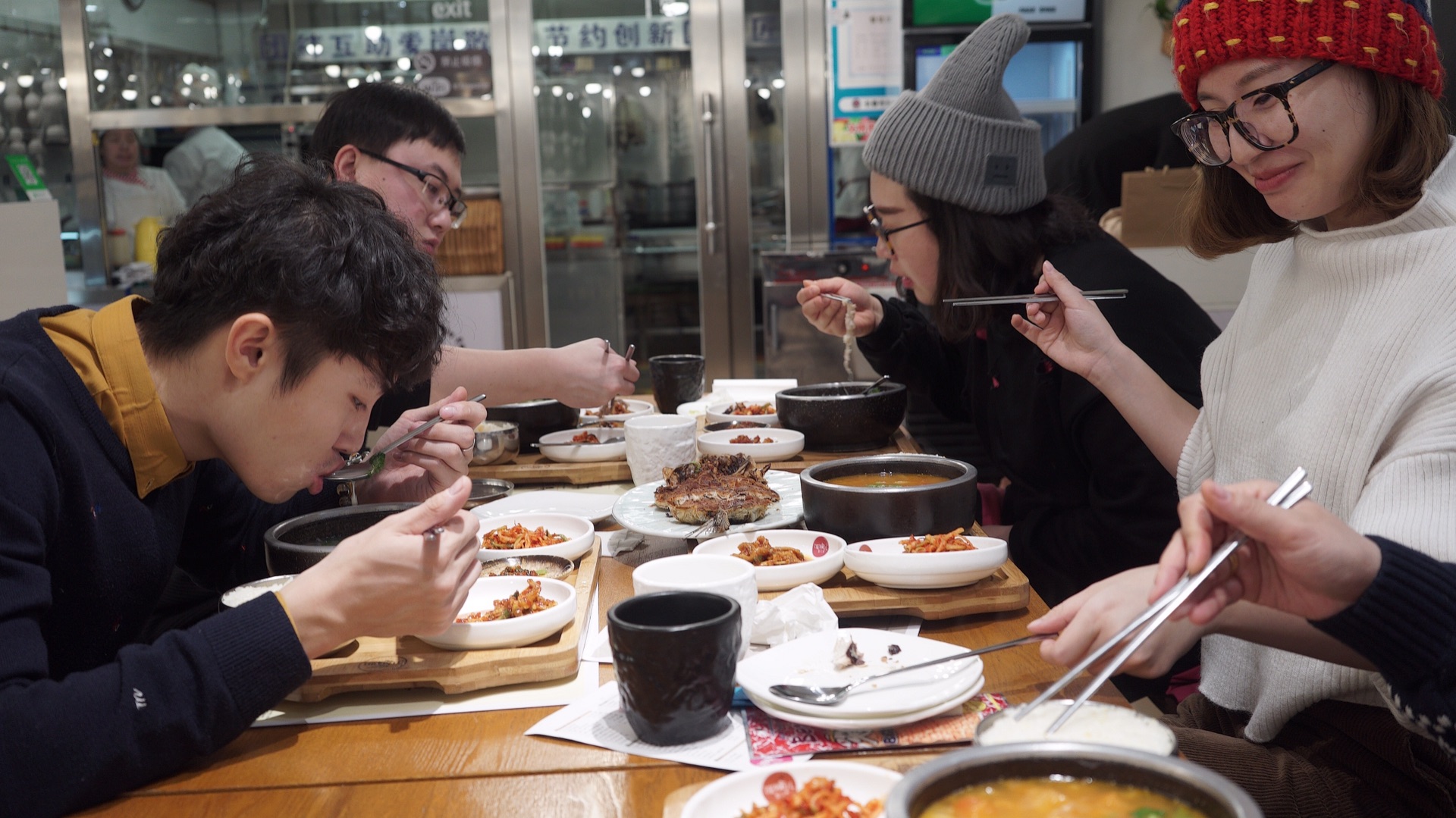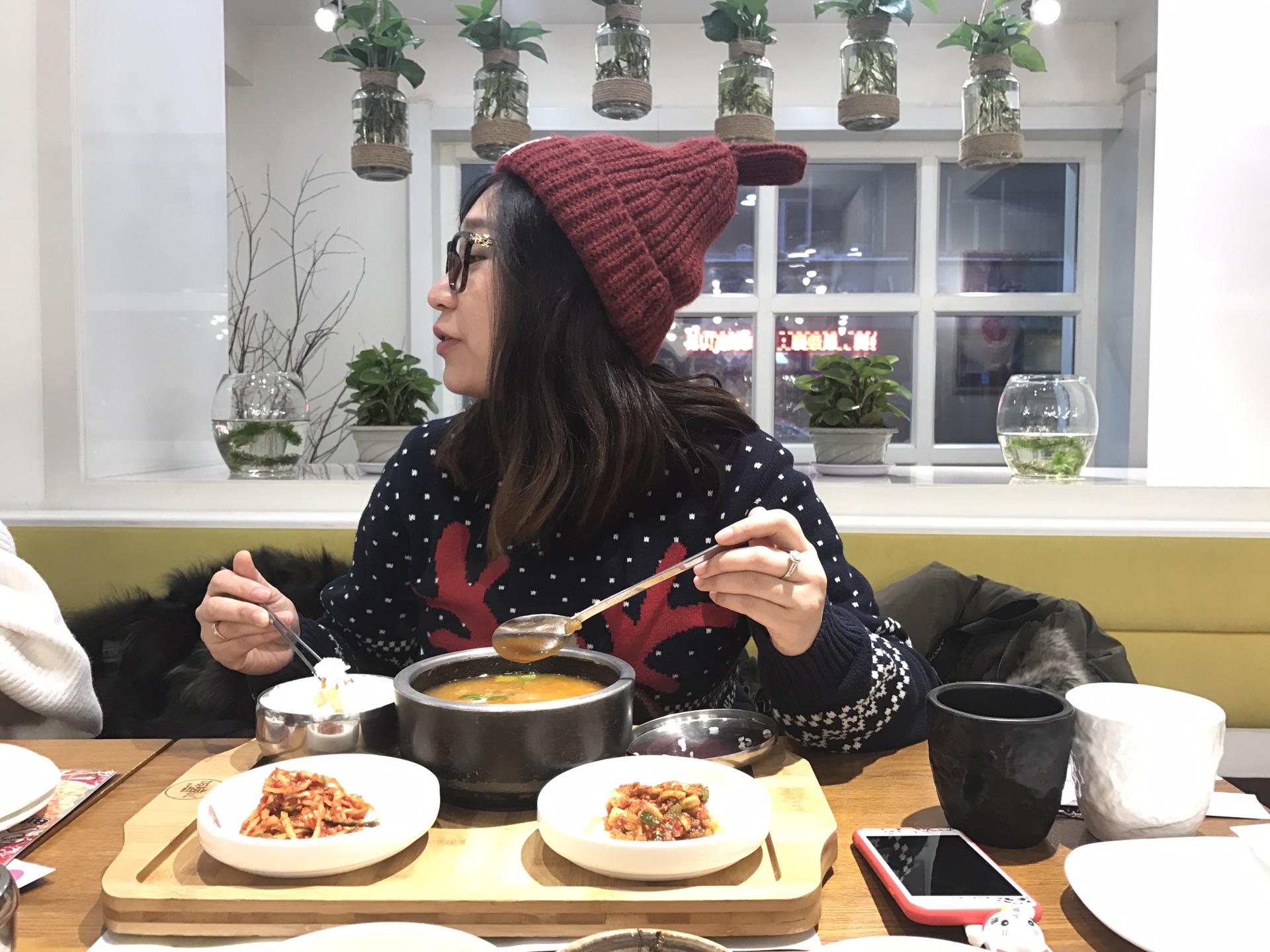 店里非常的温暖,请忽视女士们的毛线帽