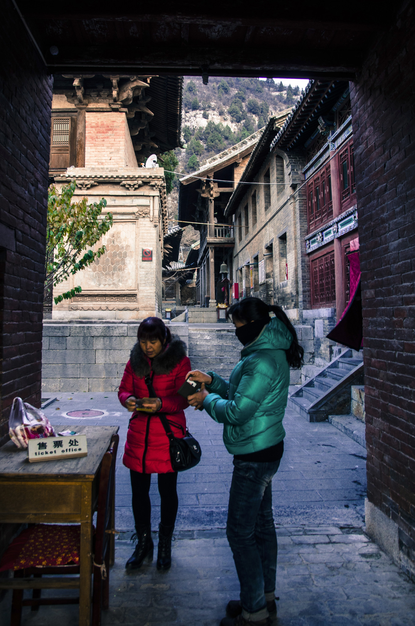 咱是最早的游客,从停车场跟随售票员登山入寺。
