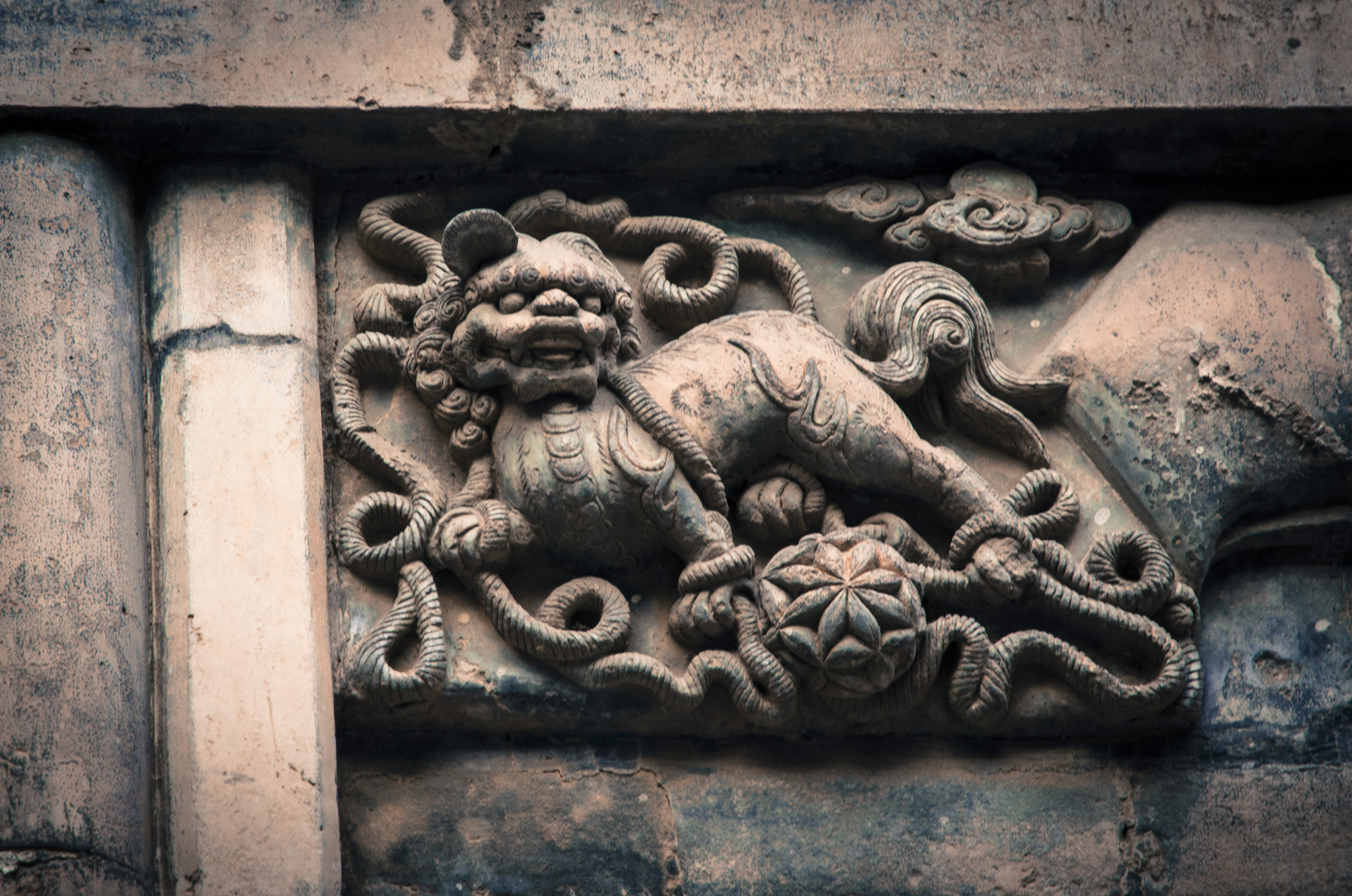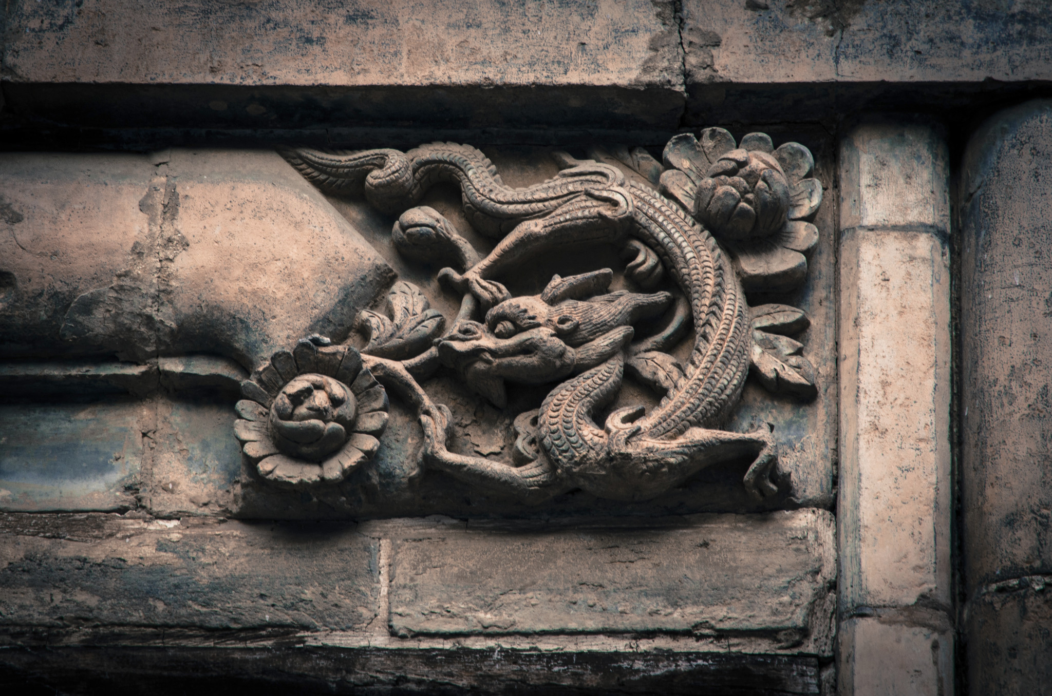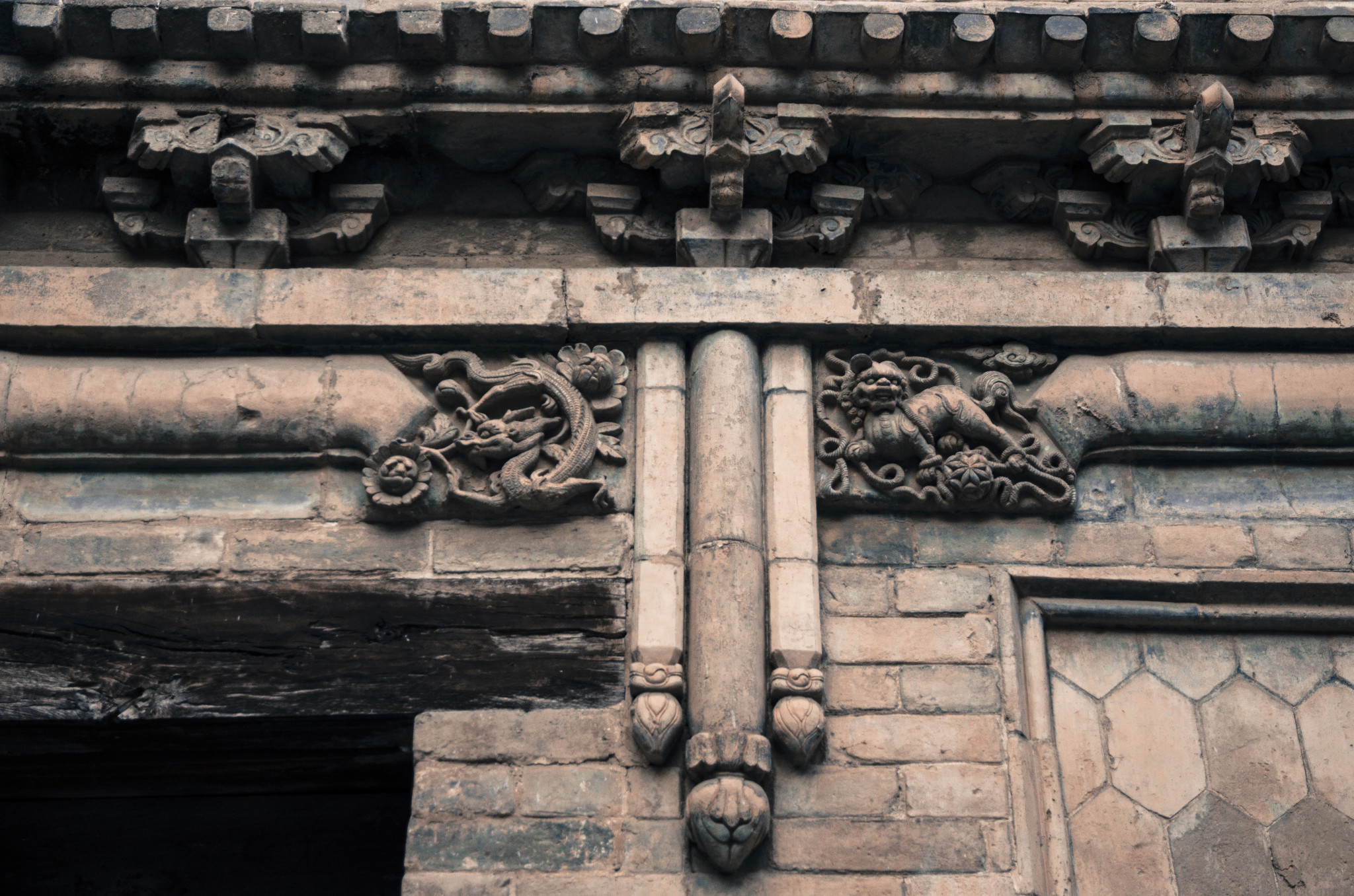砖雕仿木垂莲柱,明代流行做法。