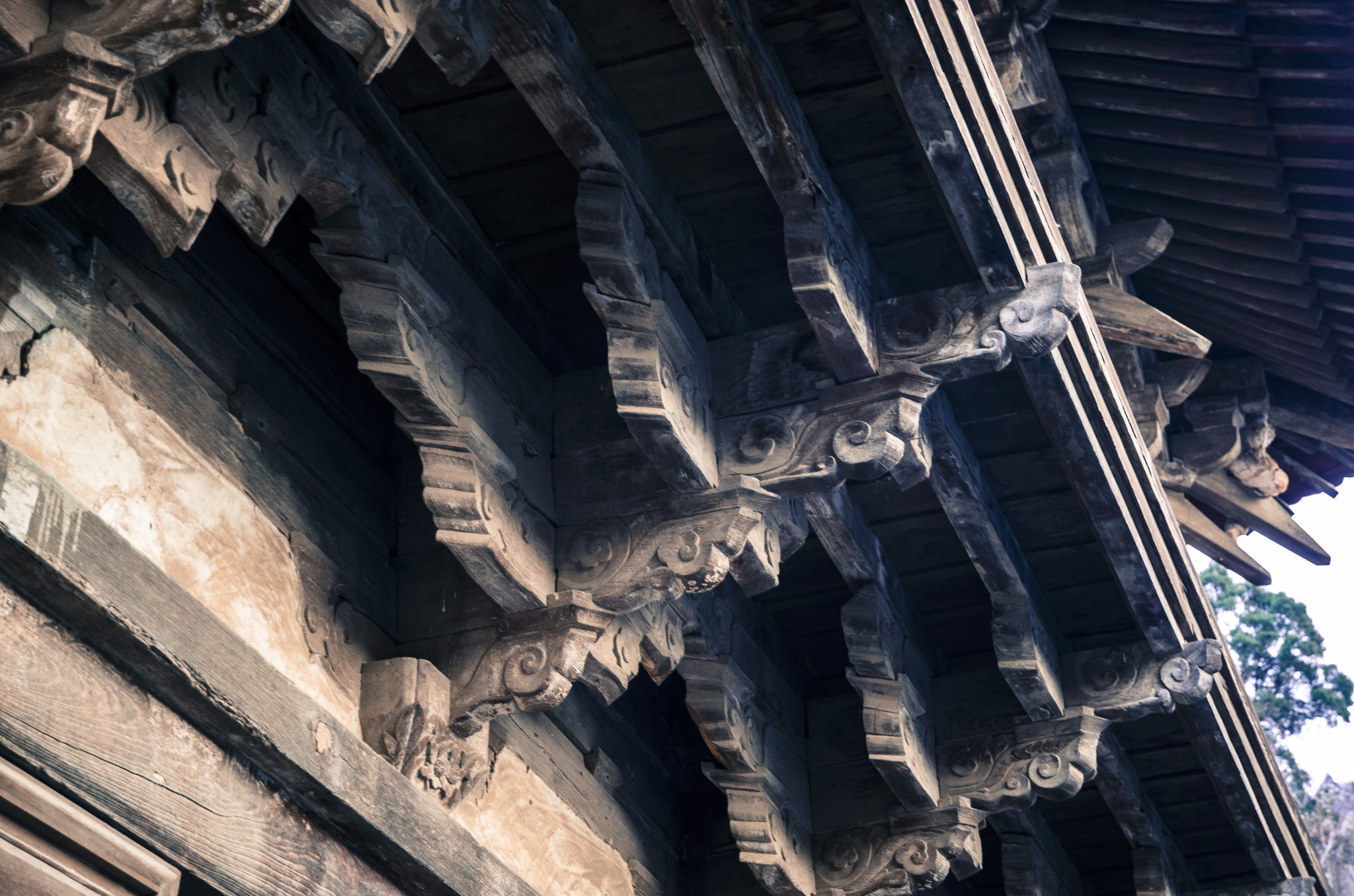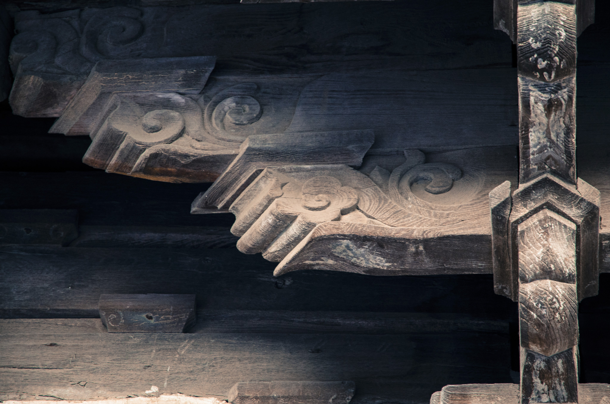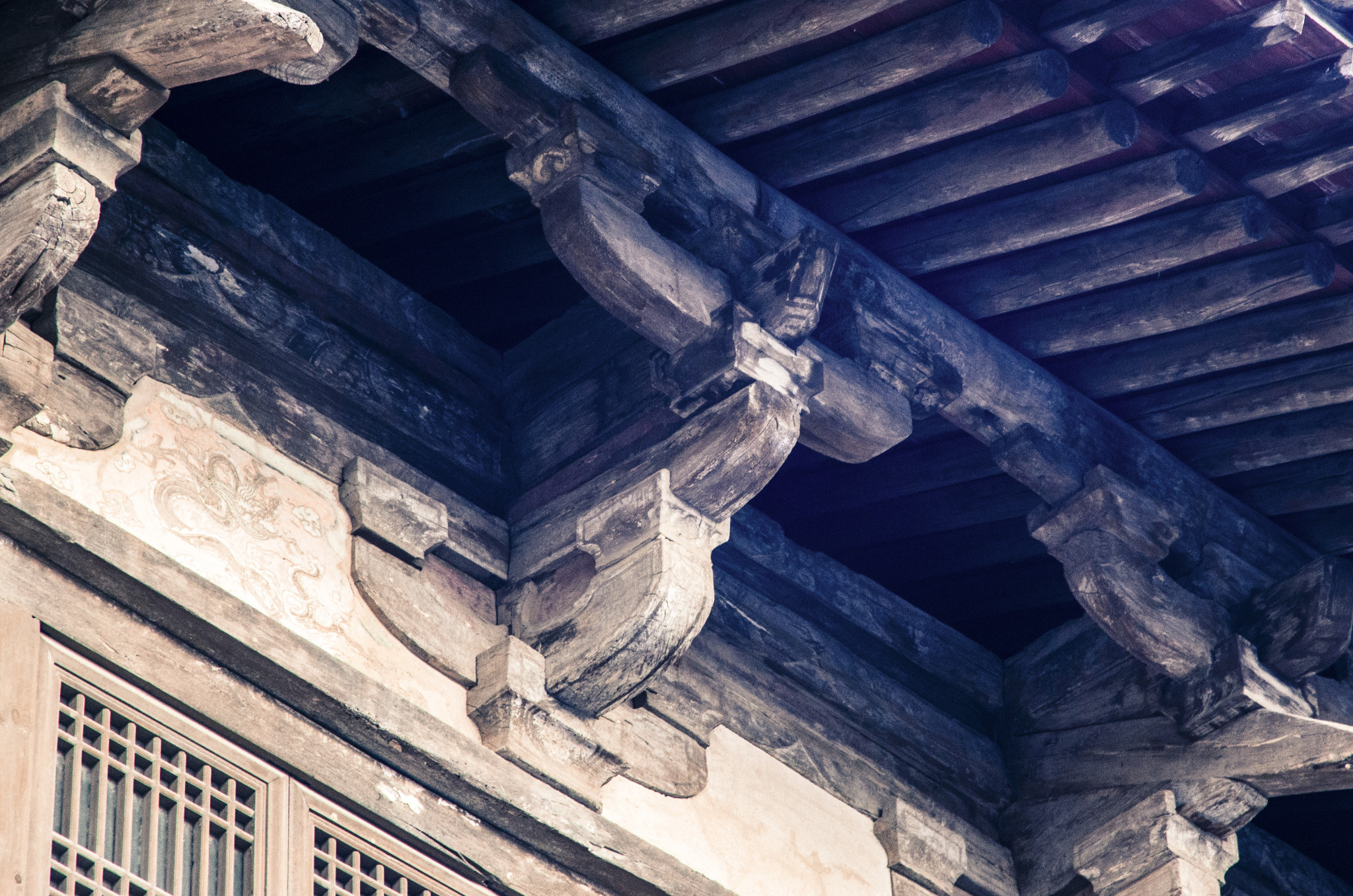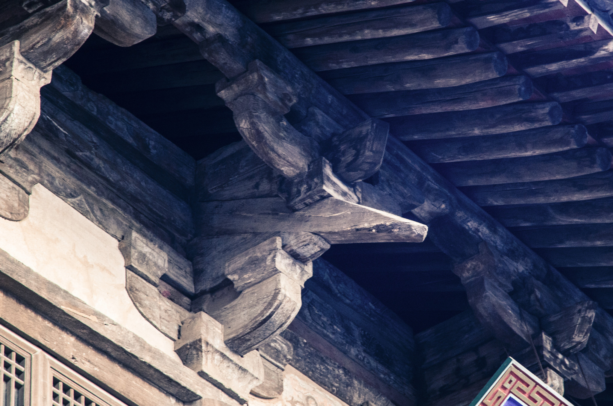 藏经楼,檐下转角斗拱上有保存完好的角神。