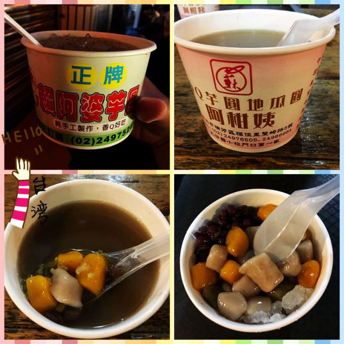 九份:把出名的两个芋圆全都尝了,赖阿婆家的口感比较软糯,阿柑姨家的口感比较Q弹;有冷热两款,凉的不会那么甜