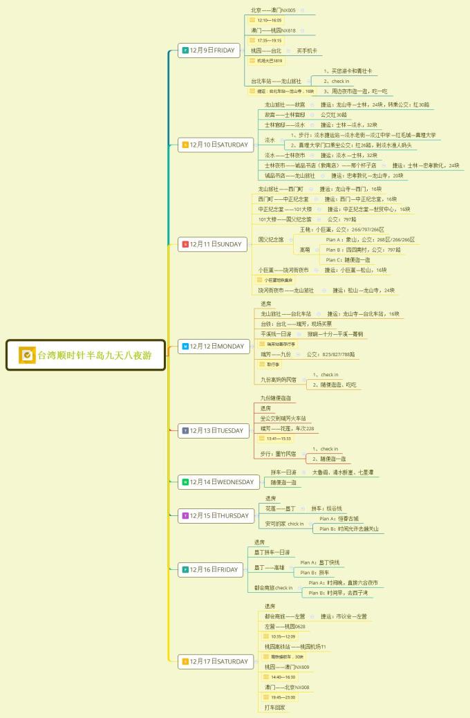 出发前一周,终于出了下面这张图片的具体行程(挺好的一个办公流程软件,让我用于做这个