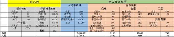 林林总总,有的没的全都加上了,自己花了差不多7000RMB,比预计多了1000RMB,主要是行前准备买的东西太多,现在想想,根本就不用