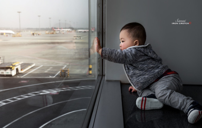 落地玻璃的倒影,泰山的小手忍不住去触摸,也许你还不知道镜像就是自己。窗外的铁鸟不时腾空而起,第一次看到飞机的你也会好奇,但却没有丝毫胆怯。