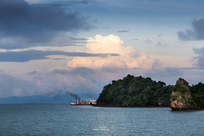 差点忘记了,如果不是直飞的朋友,在素叻他尼坐船上岛,正好可以在船头欣赏日落顺风车。