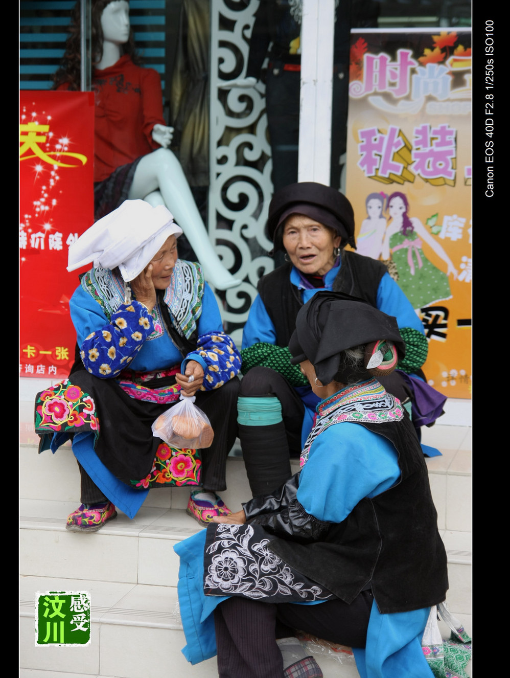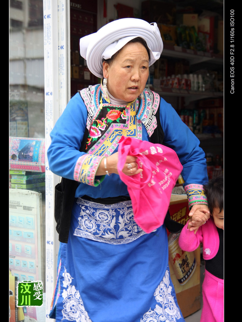羌族民族服装满街都是,大家挺喜欢穿这个,也蛮漂亮的!