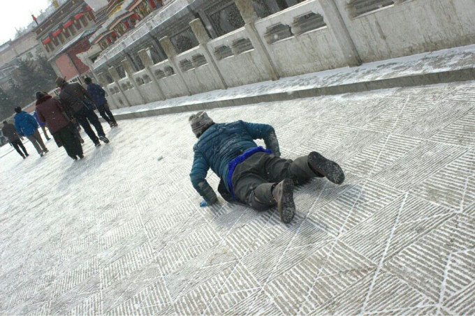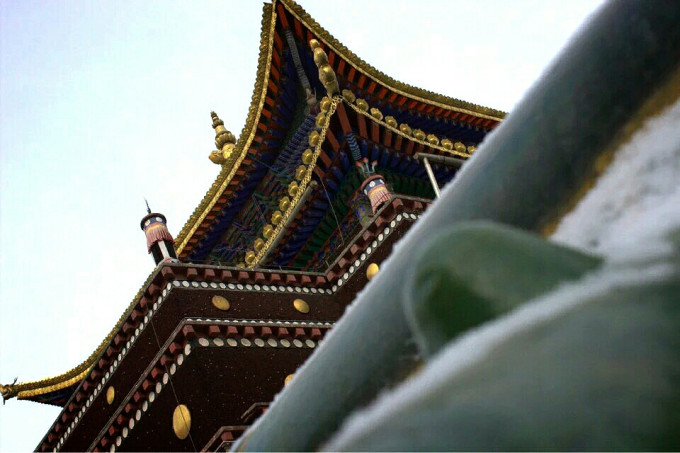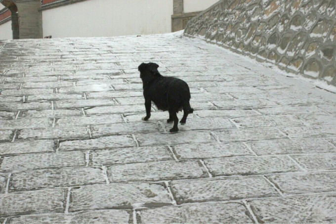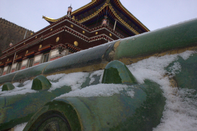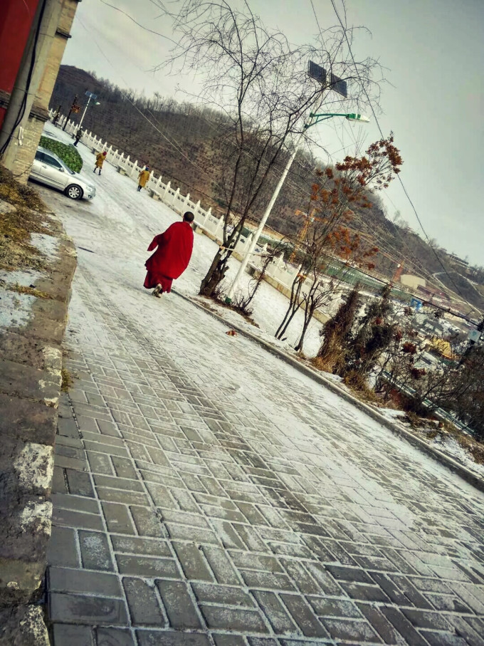 零下十几度下着雪,孤独而虔诚的朝拜者。即使有游客跟在后面拍他,也丝毫没有犹豫滞留。