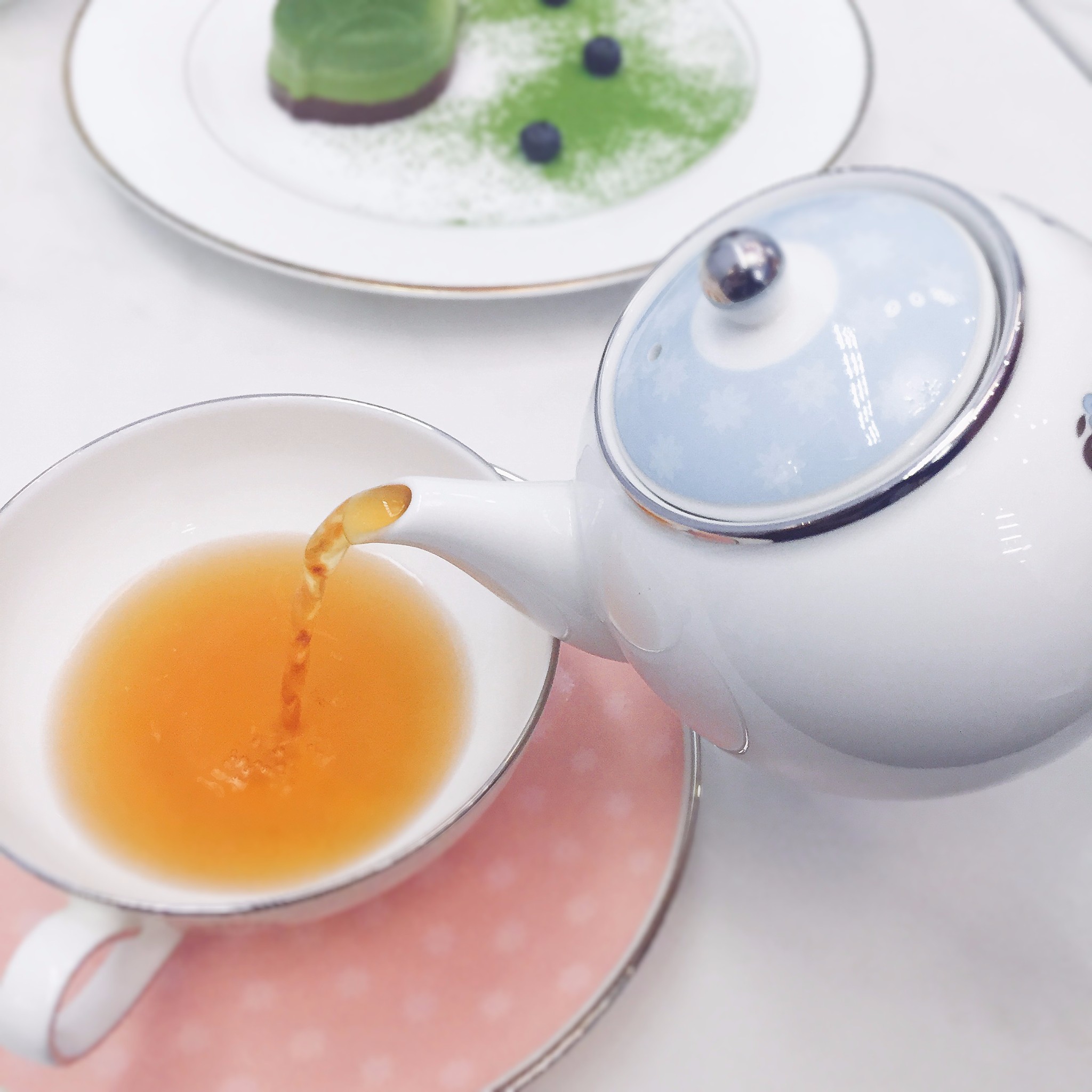 下午茶套餐,398元,两份茶可选,点了这个红丝绒茶,口感很英式,茶感比较强烈,没有太多的甜的或者是涩的口感。而且杯子的外貌简直美cry,粉蓝的组合,柔和的少女心。