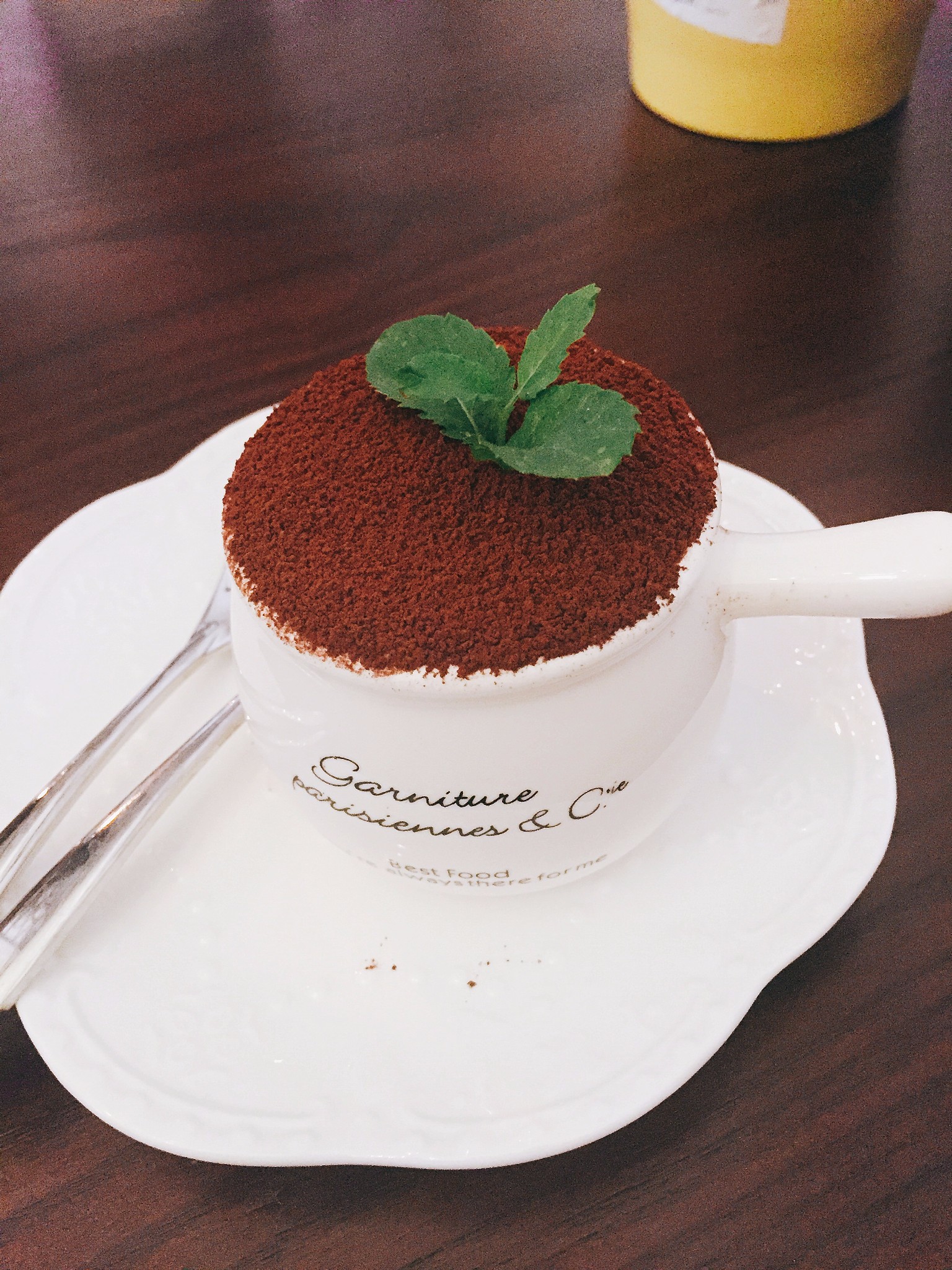 提拉米苏吃到嘴里香、滑、甜、腻、柔和中带有质感的变化,味道并不是一味的甜,因为有了可可粉,所以略微有一点苦涩,这正好与卡布奇诺相配。