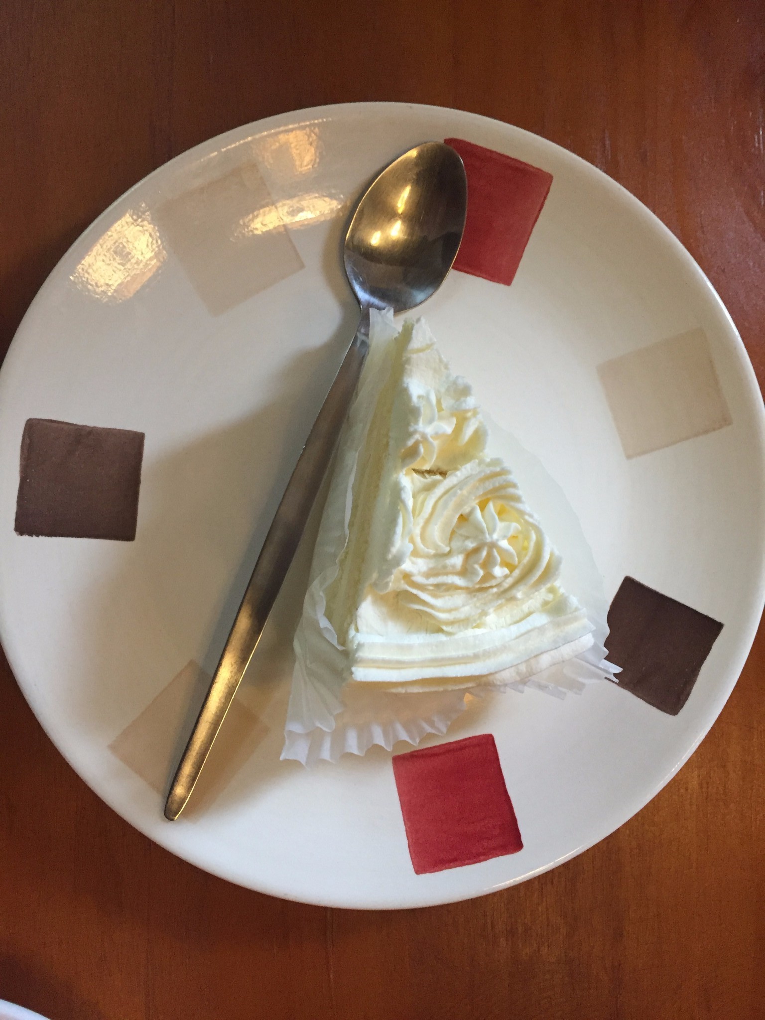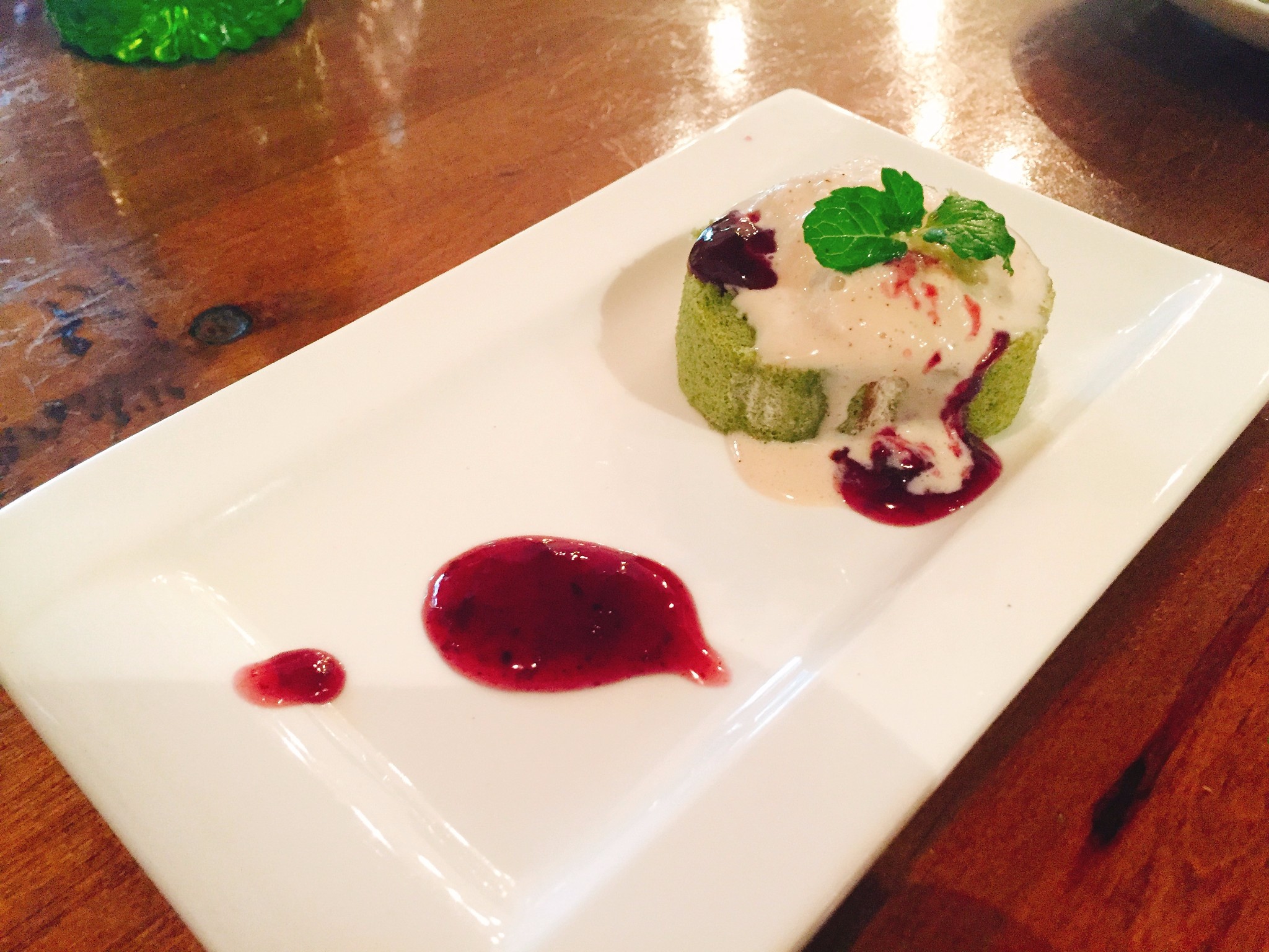 这是送的饭后甜点,良心店家!上层的冰激凌应该是香草口味的,冰冰凉凉的挺好吃的,有些化开来之后覆盖在蛋糕上,和鲜奶已经抹茶的清香混合,不至于被蛋糕的味道腻到,又很好的融合了两者的优势!还是蛮好吃的!