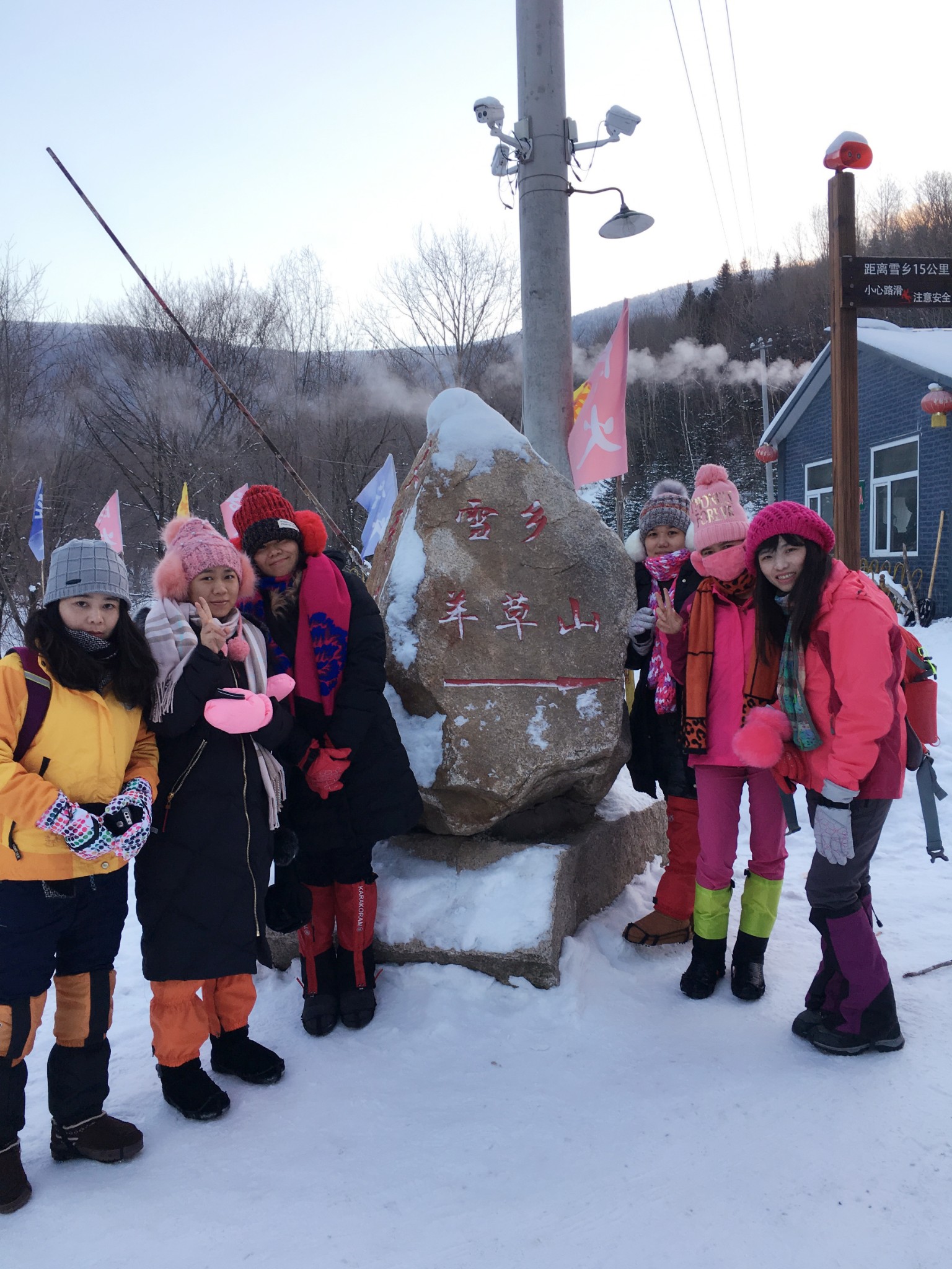 手机;五个人用苹果手机,一个人用华为手机,冷的带苹果直接关机,如果生活在这里真心觉得苹果不合适,最后总结经验手机背后粘贴暖宝宝,再插上充电宝才也一边拍照.