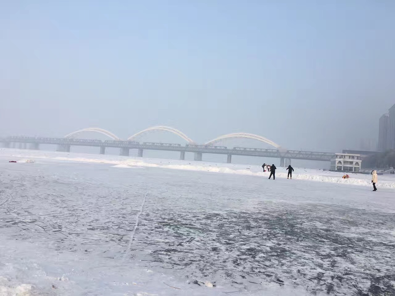 冬季的松花江早就结冰,不知道多厚的雪的下面是多厚的冰