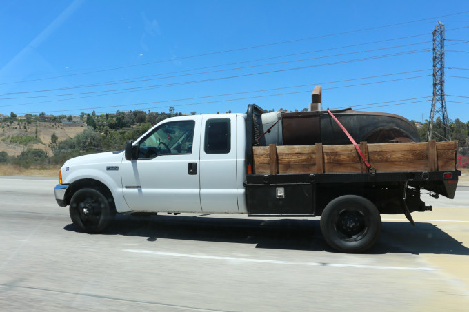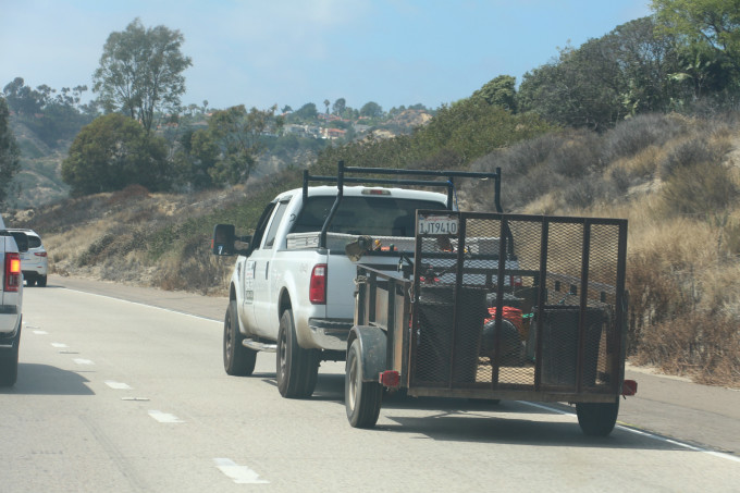这辆皮卡后还牵引了一辆小拖车,增加了更多的拉货空间,这种做法,恐怕在中国是要被禁止的。