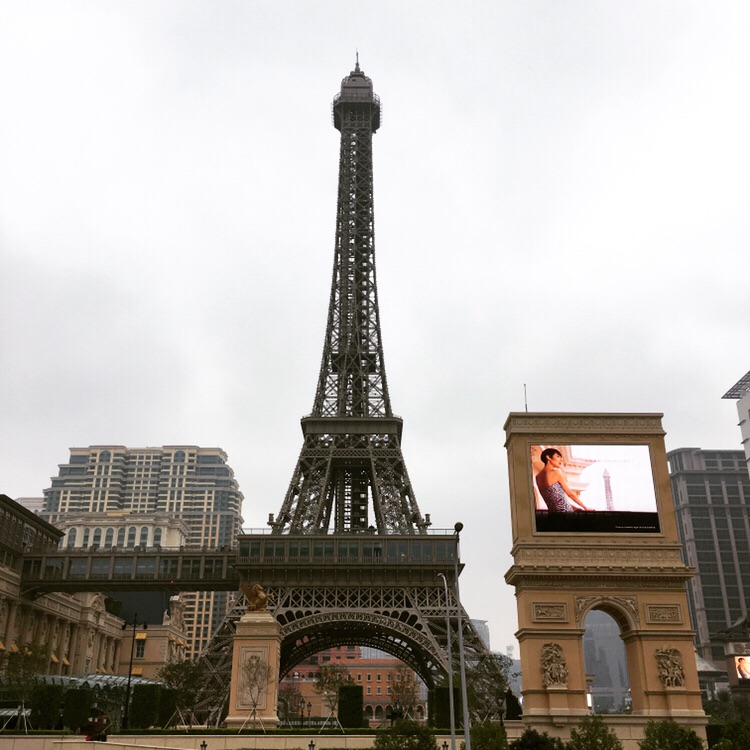 【巴黎人】和新濠影汇仅隔一条大马路,仿造的巴黎铁塔和凯旋门足够让你过把瘾,在新濠影汇这边拍照效果更佳。