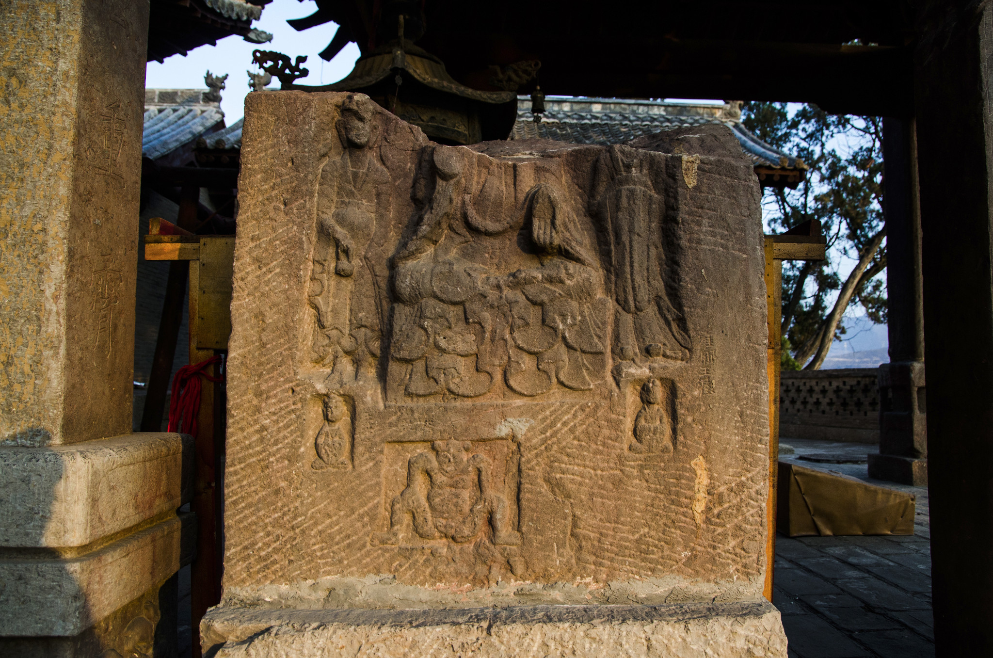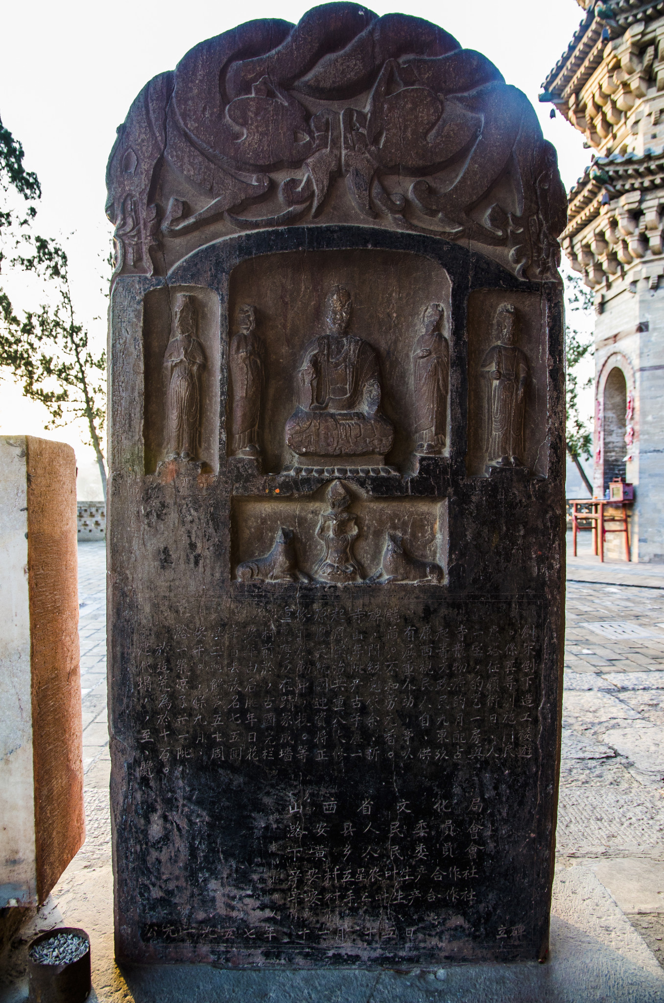 北齐造像碑,碑阴下部被磨平,新刻“重修原起寺碑誌”,款识:山西省文化局、潞安县人民委员会、下黄乡人民委员会、辛安村五星农业生产合作社、辛安村手工业生产合作社 公元一九五七年十一月十五日 。