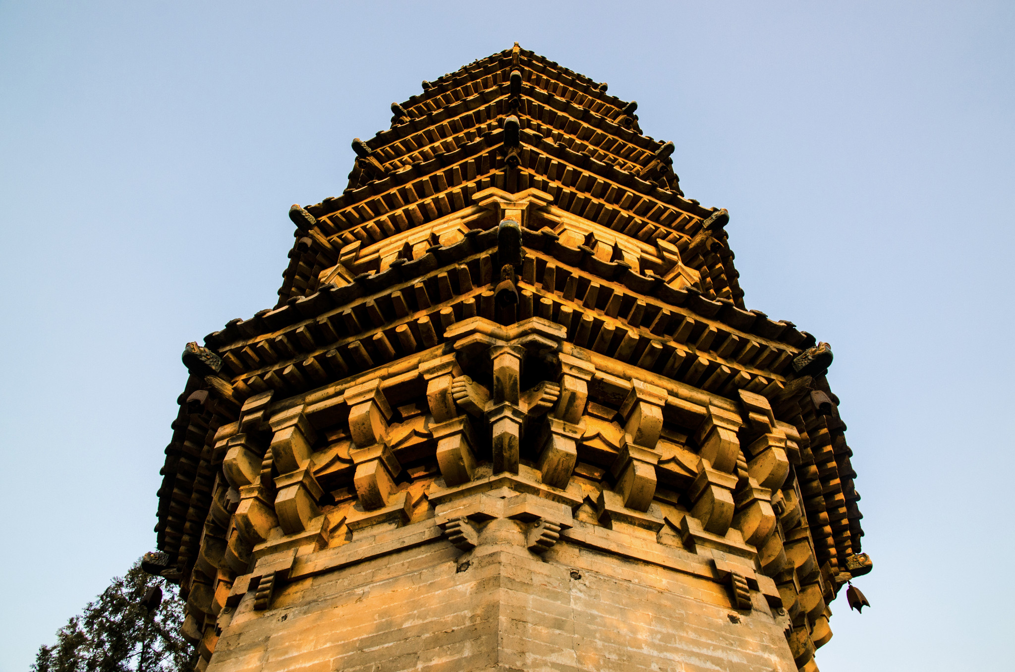 砖砌八角七层密檐式,高17米,塔身一至三层为空心,一层正南向开券门。