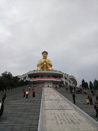 定光佛又称定光古佛、定光大师,是中国历史上唯一被朝廷正式赐封“定光佛转世”的高僧,是全球一亿多客家人的“保护神”。定光佛为铜塑建筑,全身上下金光闪闪,大佛座下的建筑是佛堂,分为3层。