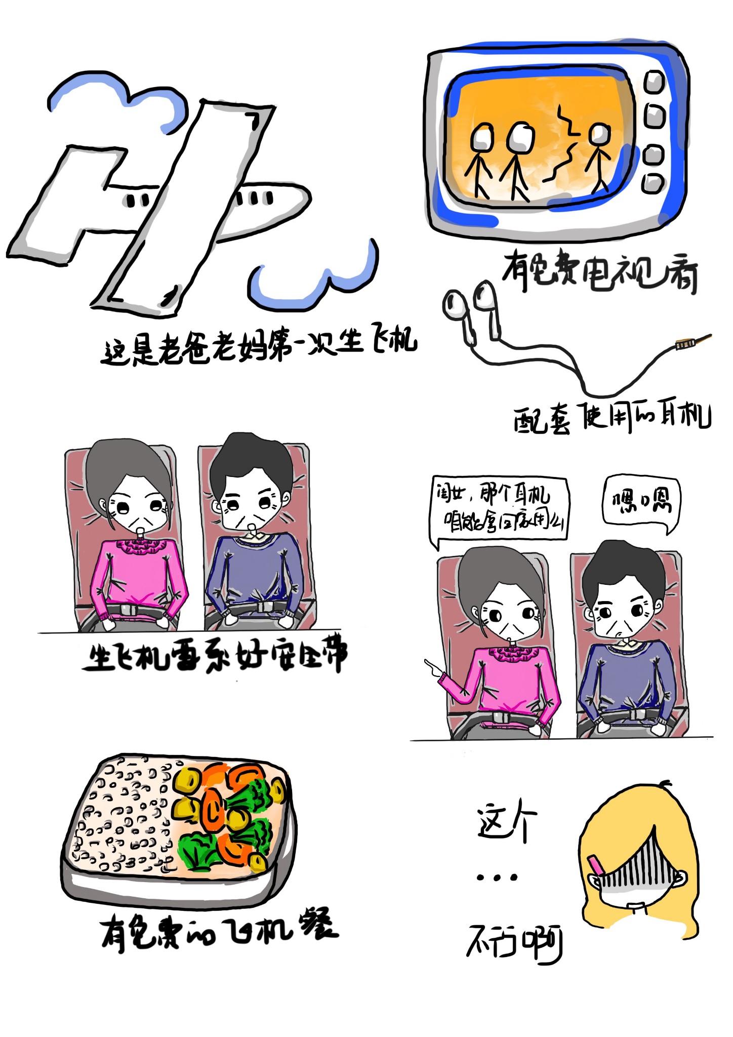 父亲母亲第一次坐飞机,勤俭的不要不要的~