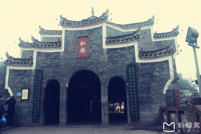 私奔吧里有句话说得好:不看凤凰九景,不懂凤凰古城。个人认为九景中虹桥风雨楼当属其首。其建于清朝康熙年间,民国时期重修,才改名为虹桥。桥面两侧为吊脚楼木板房,风雨不进,但可闻风雨声,故又称“虹桥风雨楼”。看照片仔细的亲们会问,虹桥人不多啊,其实白天人满爆棚,为了拍摄虹桥的原貌,我早上5点半起床等天亮,直到7点半才抓拍到这张相对宁静一点的虹桥风雨楼,着实不易。因为冬季凤凰天亮的比较晚,光线无法满足相机的拍摄要求,直到7点多天才刚刚亮起来,还没等拍几张,旅行社的大军就已经挤满古城的各个景点……