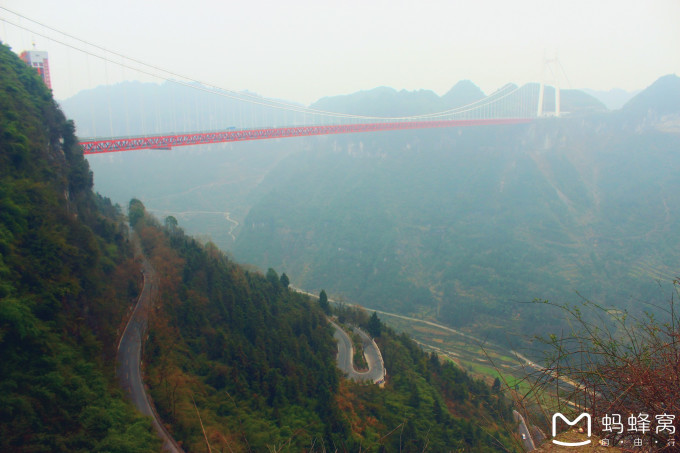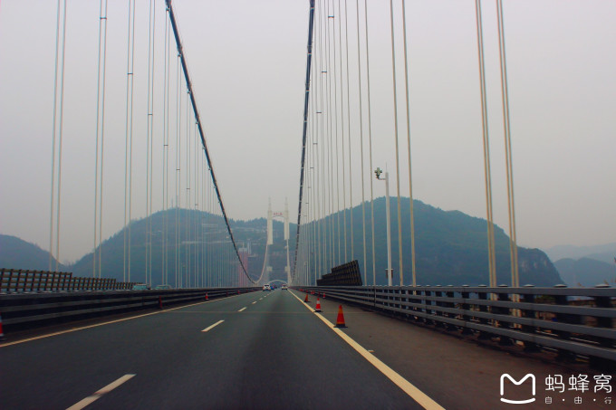 通往矮寨的路上,神奇的不仅仅是公路奇观,还有创造了四个世界第一的德夯特大悬索桥。位于矮寨上空300多米的高度,跨度1100多米,全部用吊索钢丝绳固定。行驶在桥上,没有一丁点晃动的感觉,着实让人对中国的道桥技术为之惊叹。