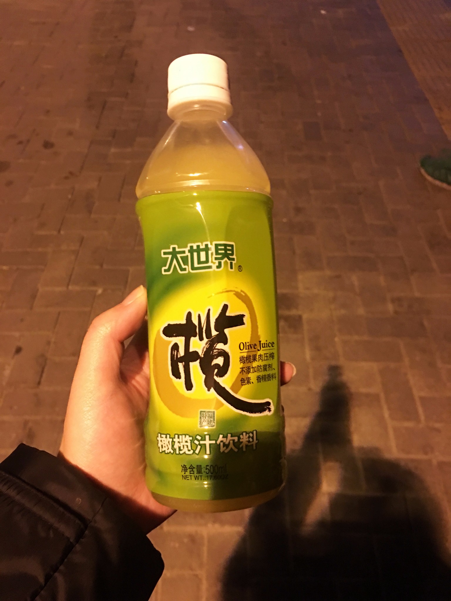 填了下肚子之后,打算回酒店休息了,买了些饮料,看到这个橄榄汁很好奇买了一瓶,就喝了一口,实在不能驾驭这个味道,还是扔给了胖子。