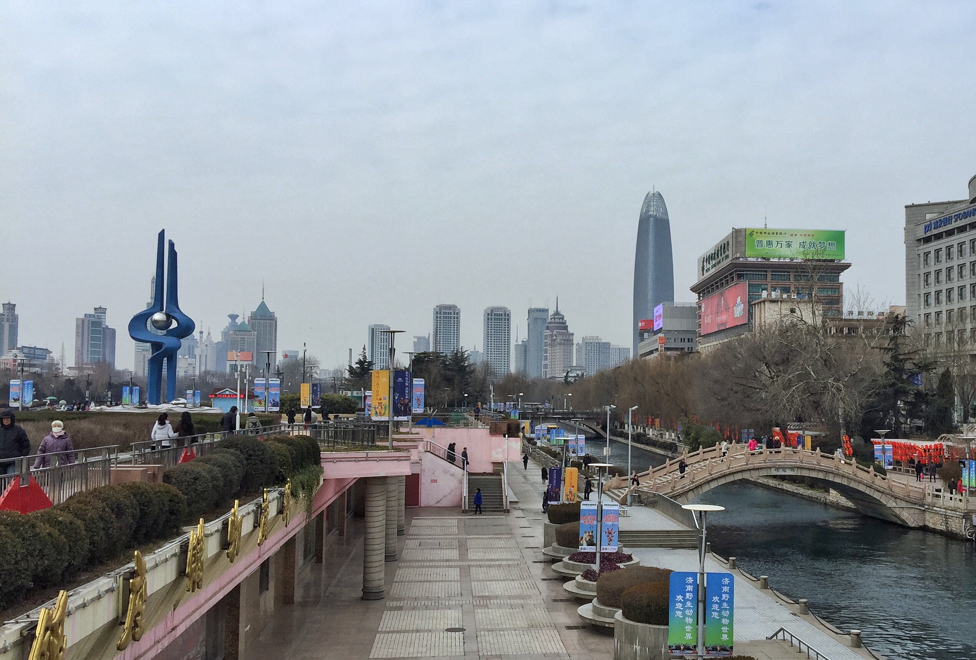 大年初四,我们在酒店用完早餐,步行向东,距趵突泉公园不远便是泉城广场。泉城广场是山东省会济南的中心广场,坐落于济南市中心繁华地带。