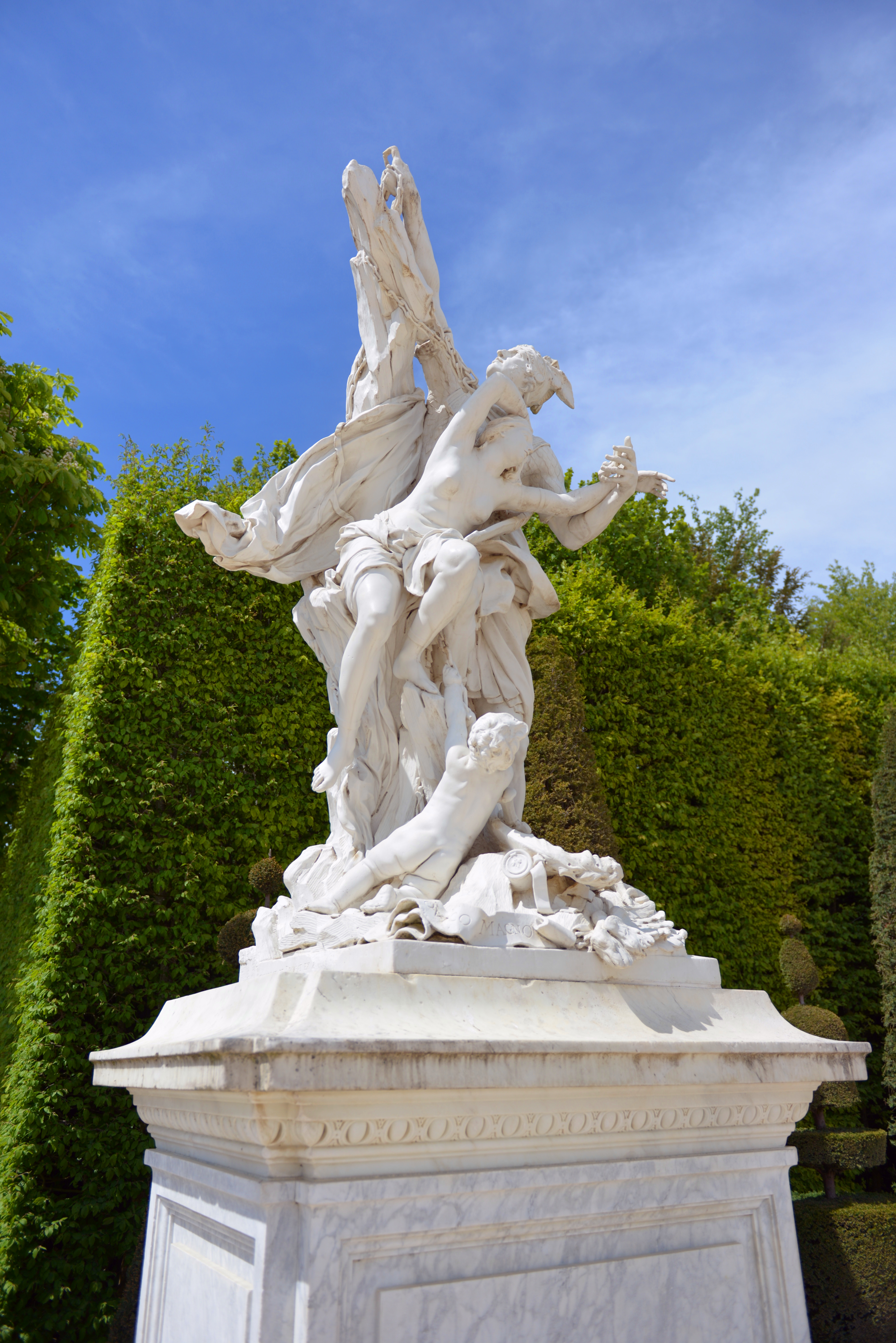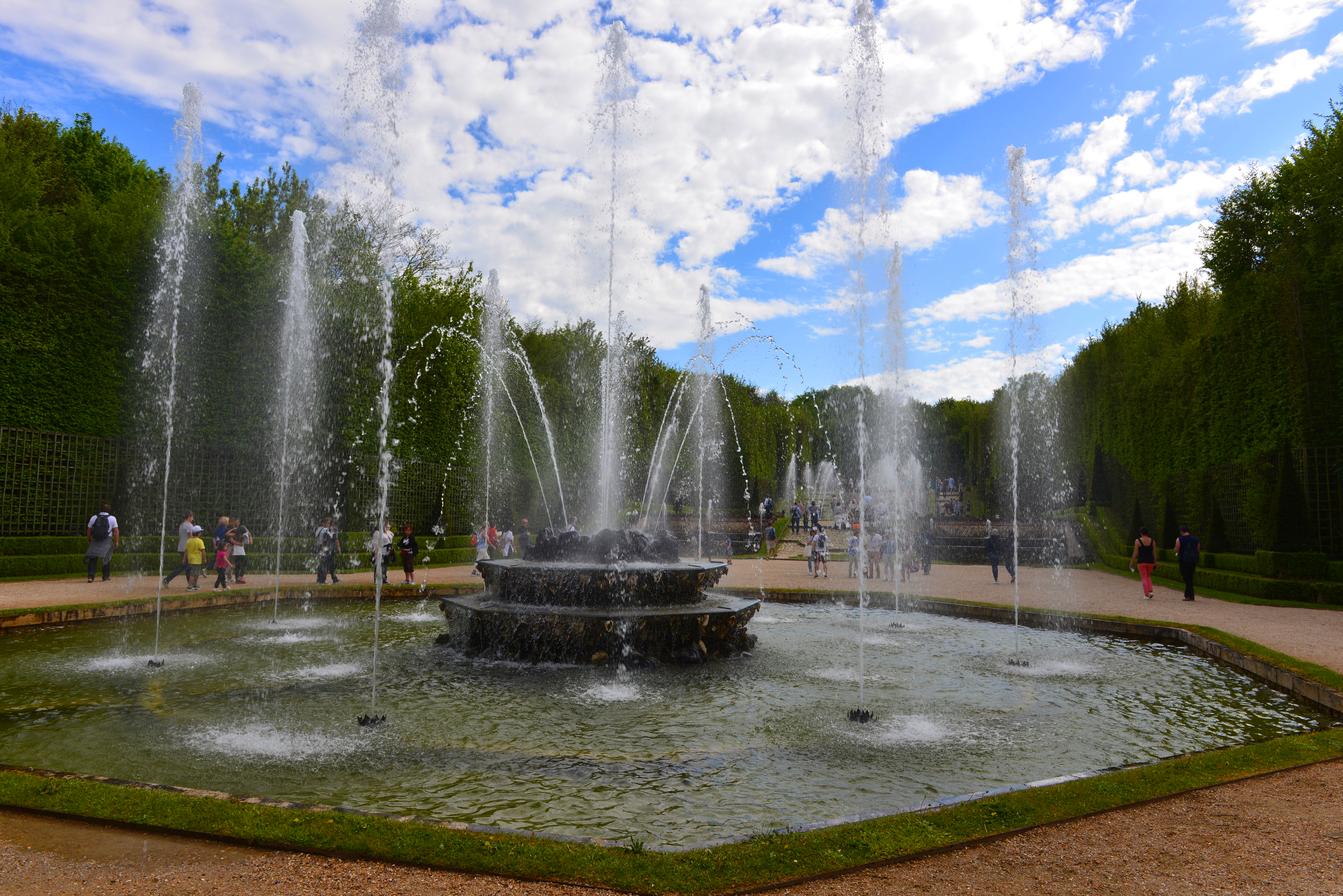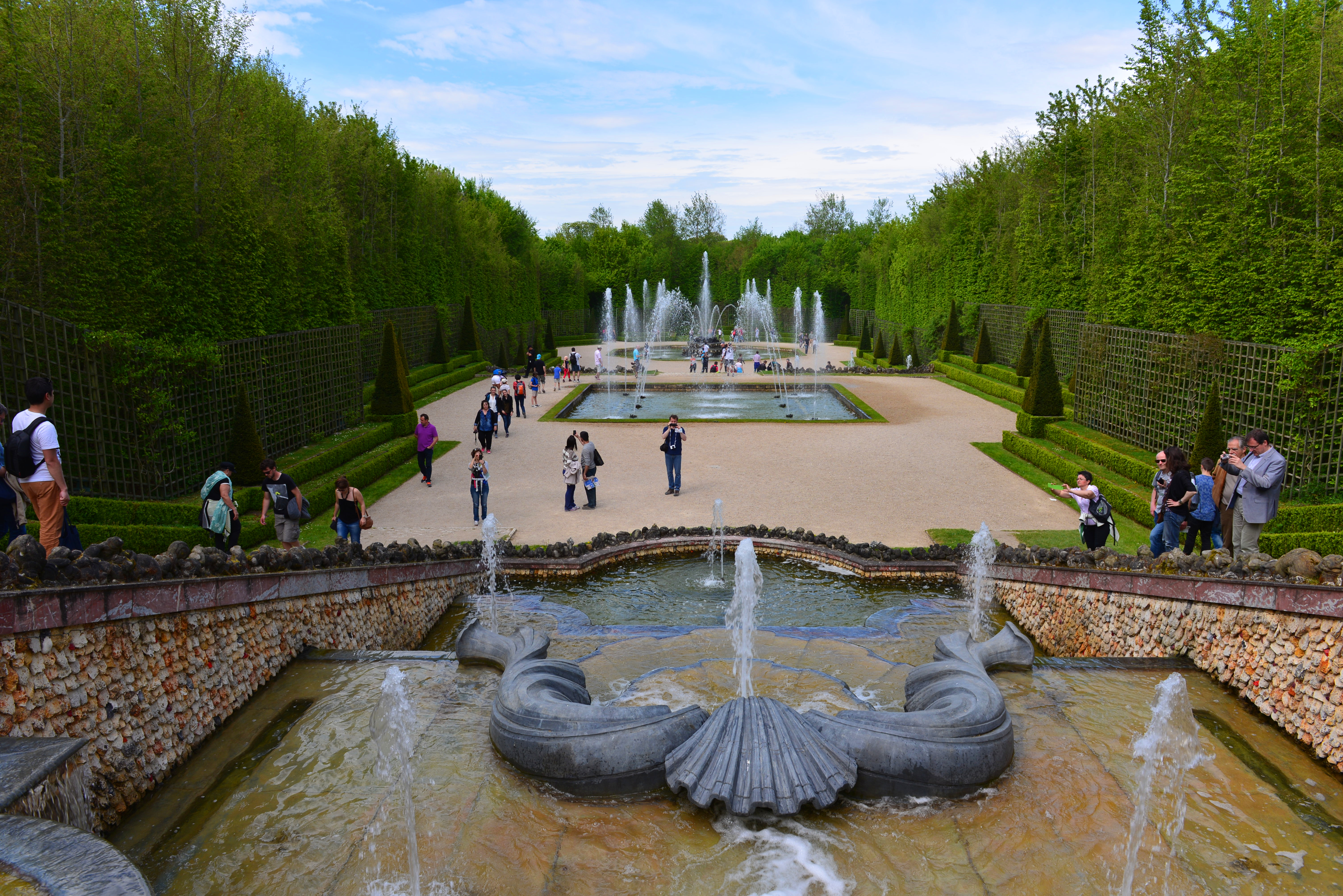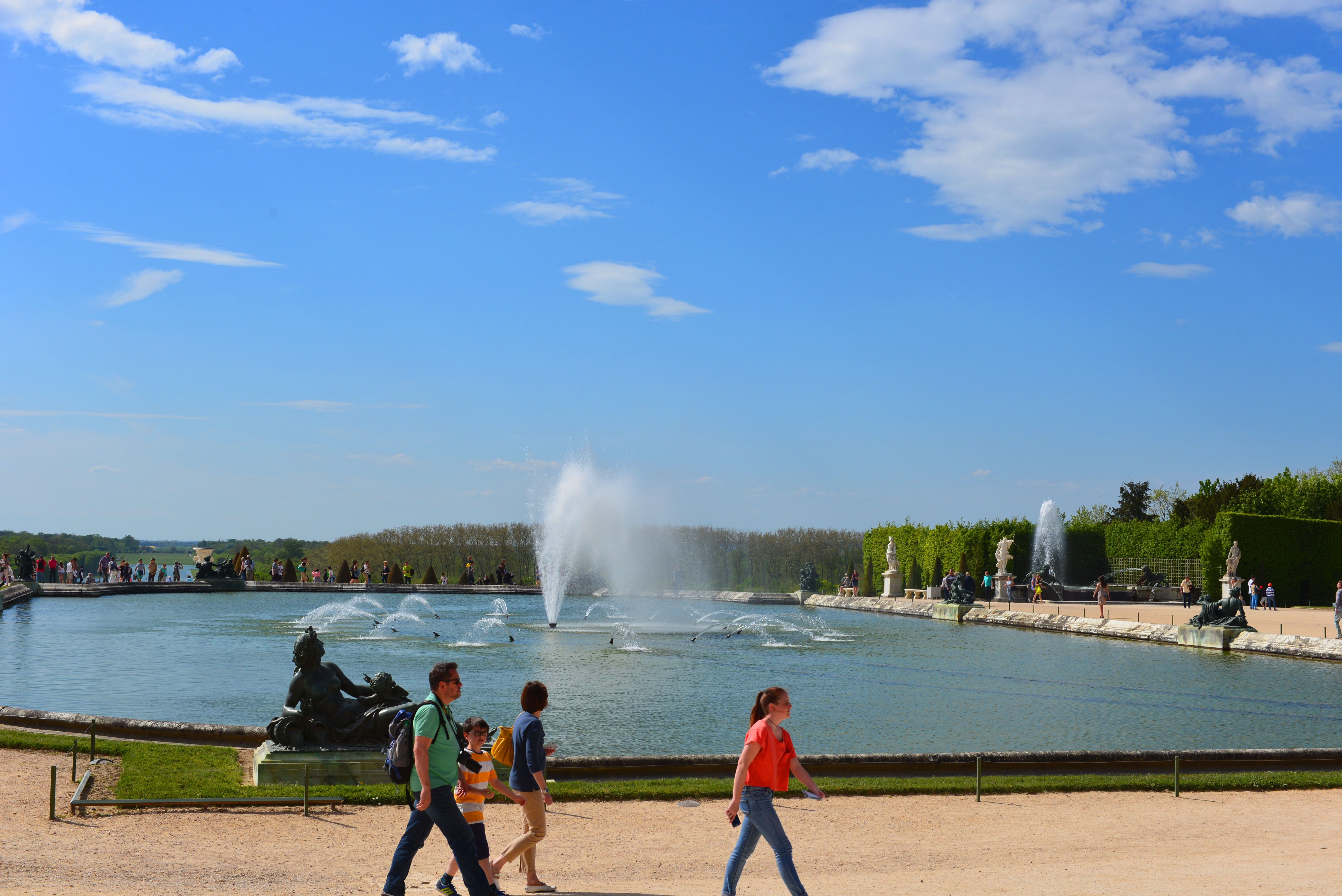 凡尔赛宫的花园是法式花园典范,精美的雕塑、对称的设计、精致的几何图案、长长的运河、人工修剪的花木处处透露着法兰西园林人的匠心。从宫殿远眺花园,或是漫步在花园的茵茵草地上,依稀还能感觉到当年的法兰西贵族的生活雅趣。