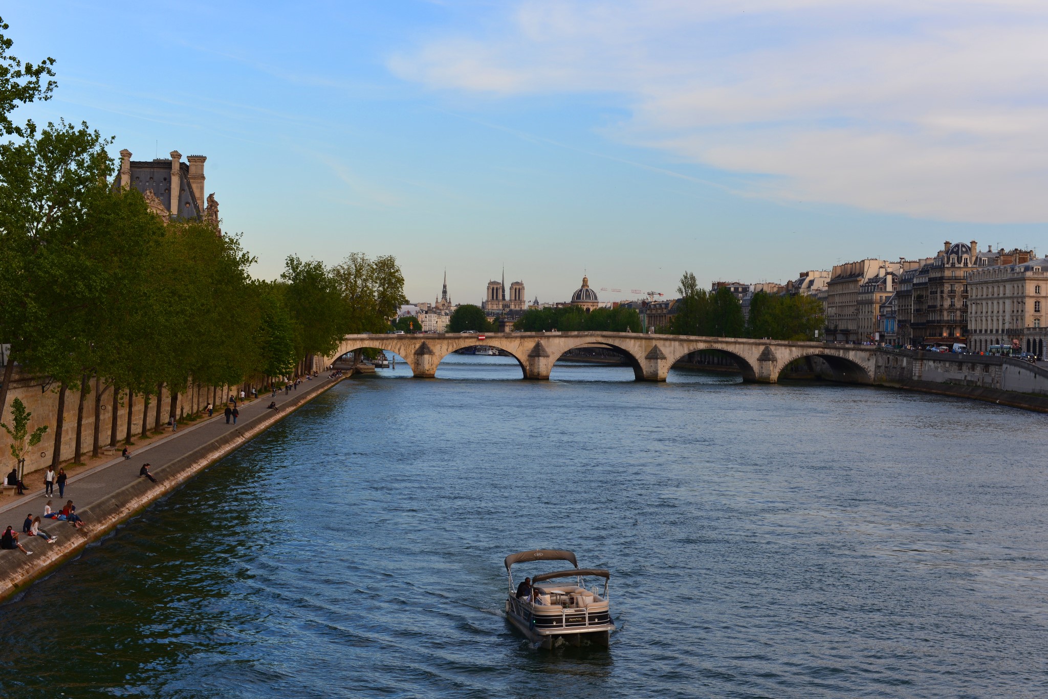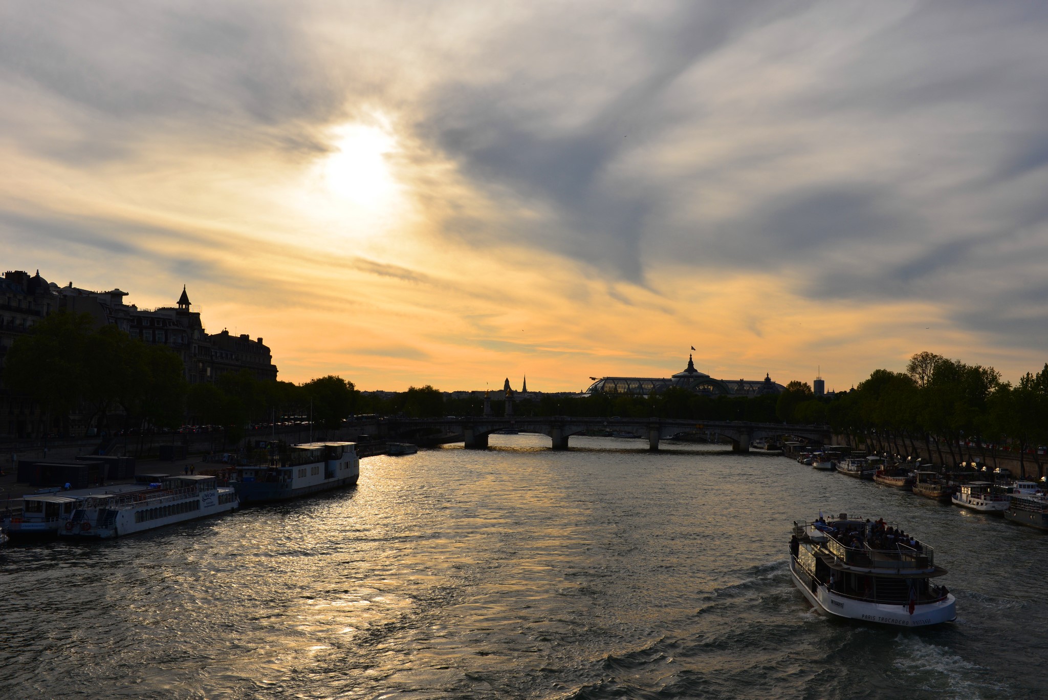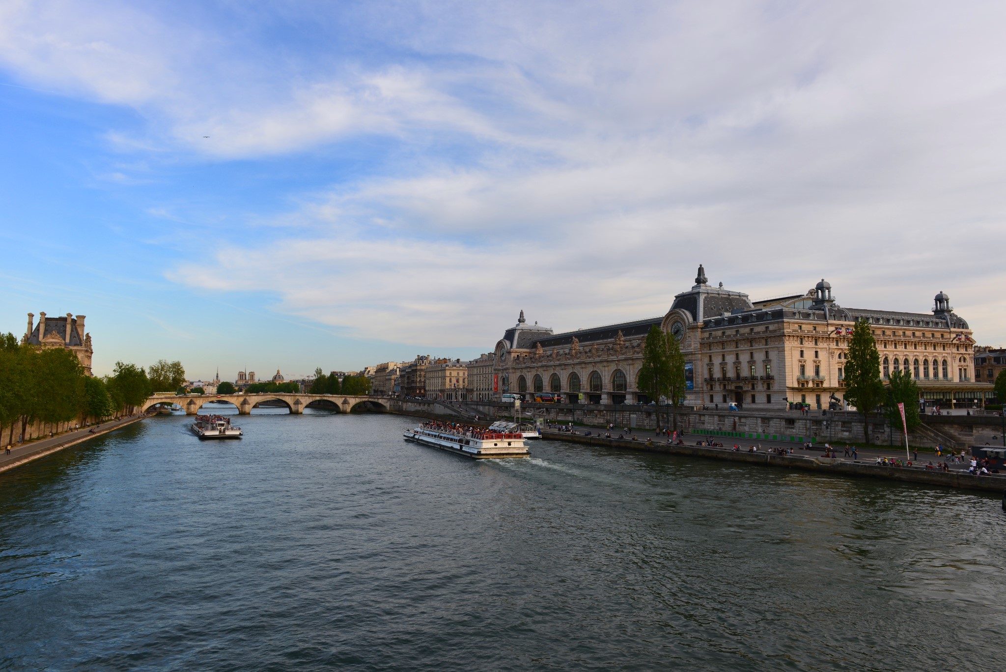 巴黎的主要景观都在塞纳河两边,所以塞纳河游船是最好地欣赏巴黎美景的方法。从塞纳河上看巴黎,所得到的印象与任何时候都不同。游船每到一个景点就会用英、法、中、韩等六国语言不停进行解说,巴黎圣母院、埃菲尔铁塔、卢浮宫等等都可一览无遗,岸边的巴黎人在那晒着太阳,悠闲地喝着红酒,还会时不时地和你挥手。