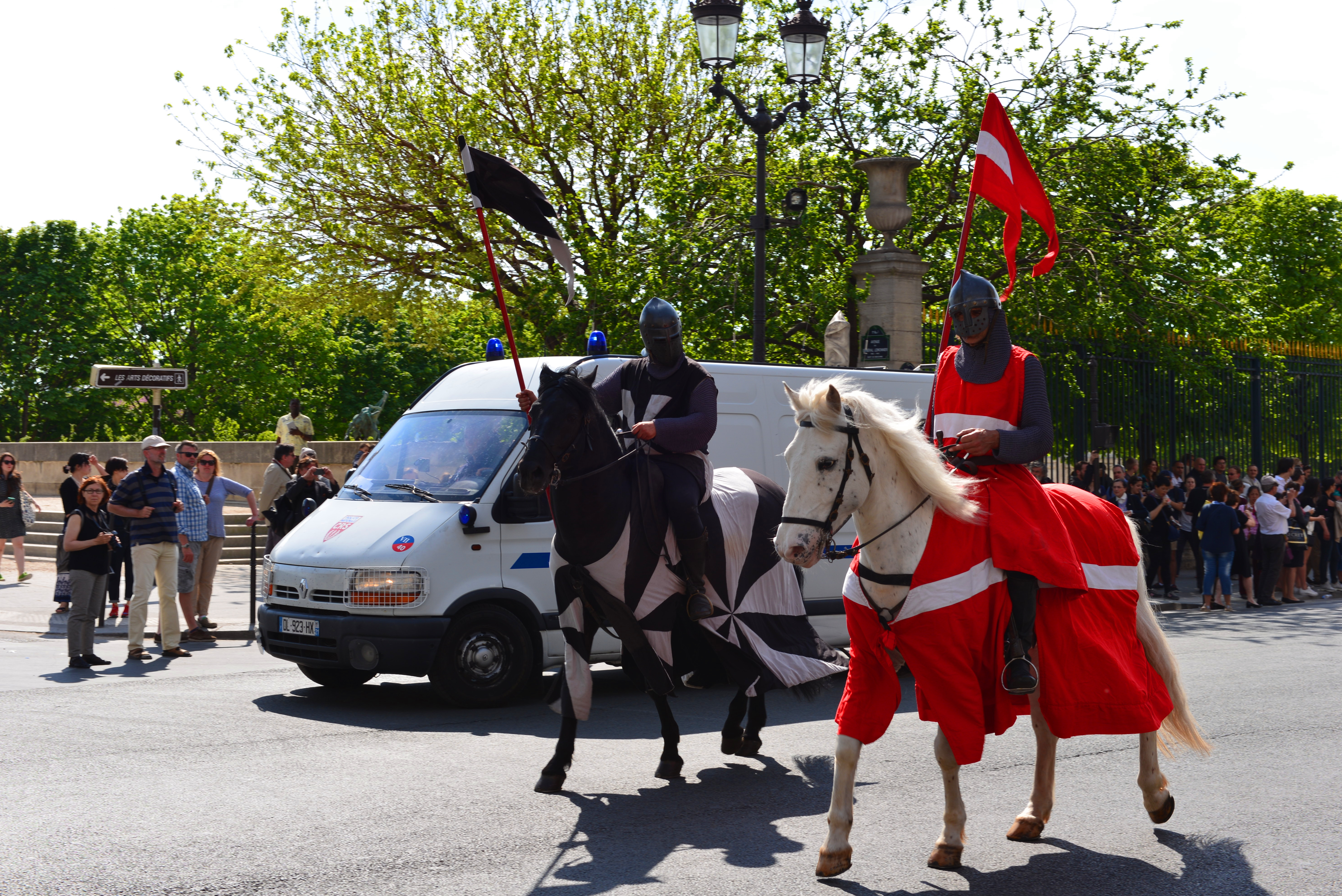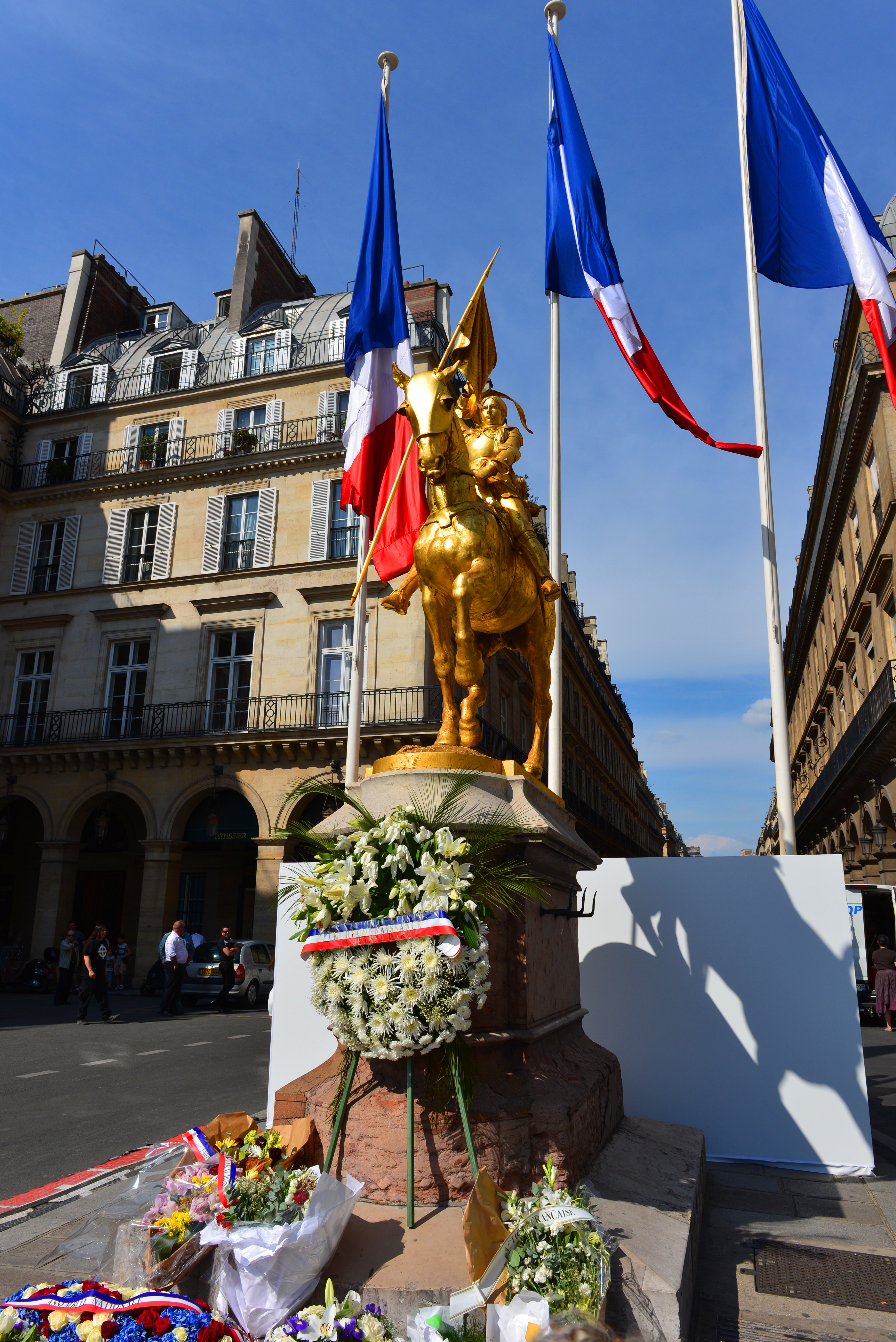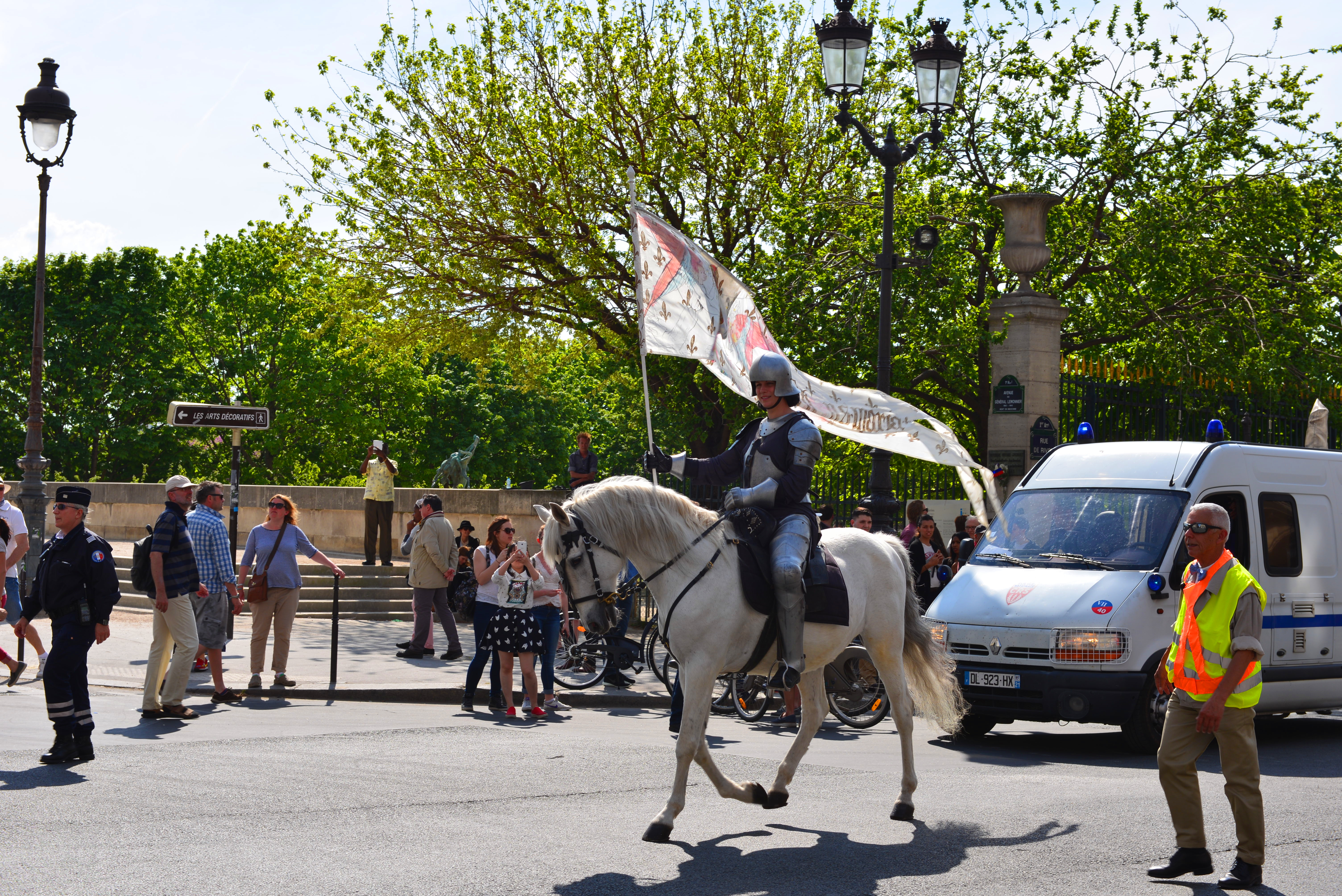 因第二天(5月8日)是法国二战结束纪念日,法国将要在凯旋门搞纪念活动,总统奥朗德届时也会到场参加纪念活动。所以,法国警察对凯旋门进行了部分封锁,进行装饰,但基本上不影响游客参观凯旋门,这种做法确实比国内人性化多了。
