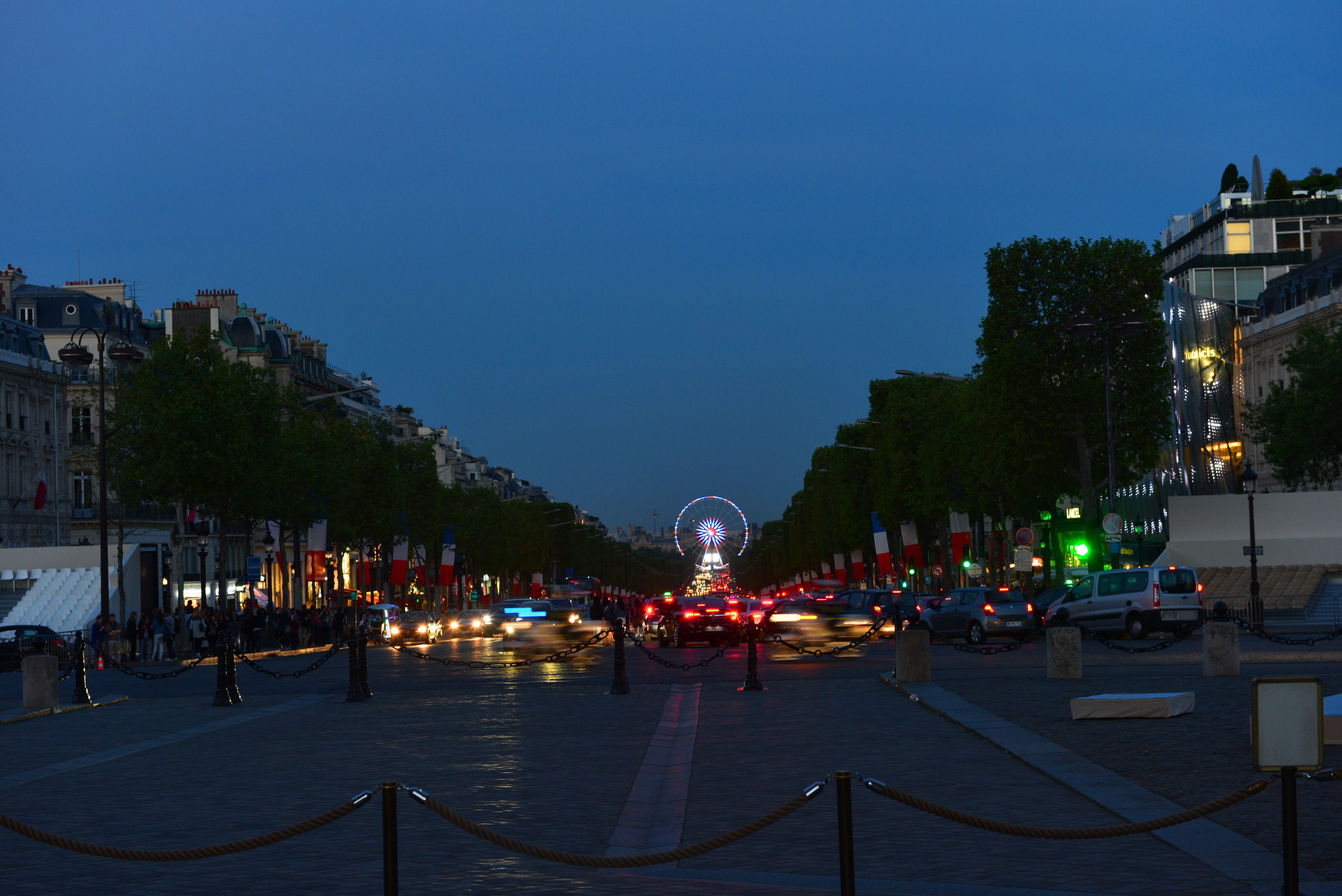 5月的巴黎,晚上8:00左右天才完全黑下来。我们打算拍完凯旋门和香街的夜景后再回酒店,所以,我们就一边坐在凯旋门下面的石阶上休息,一边等灯亮。一直等到晚上10:30左右,凯旋门的灯才全部打开。拍完夜景后,我们乘地铁M1线返回酒店。