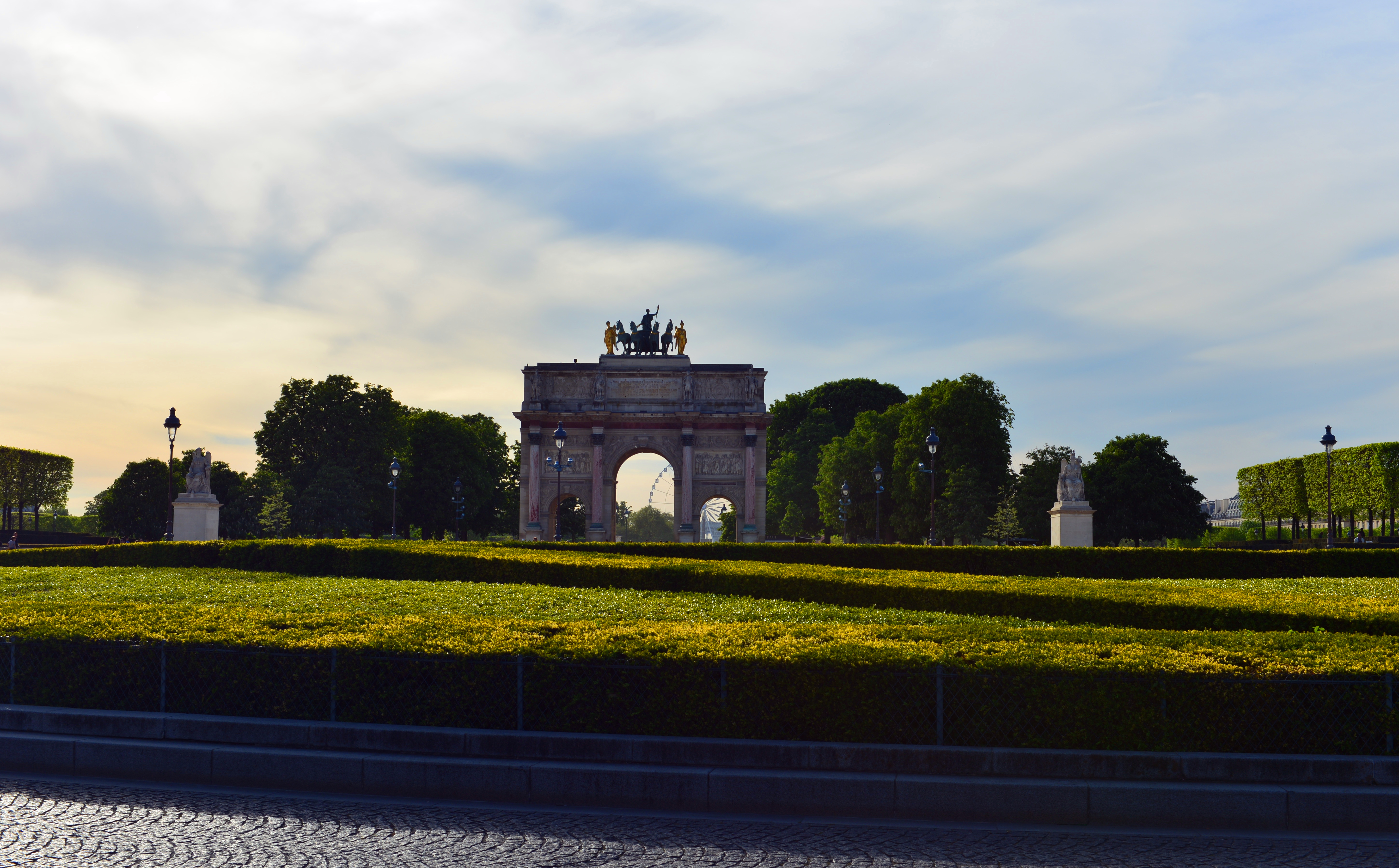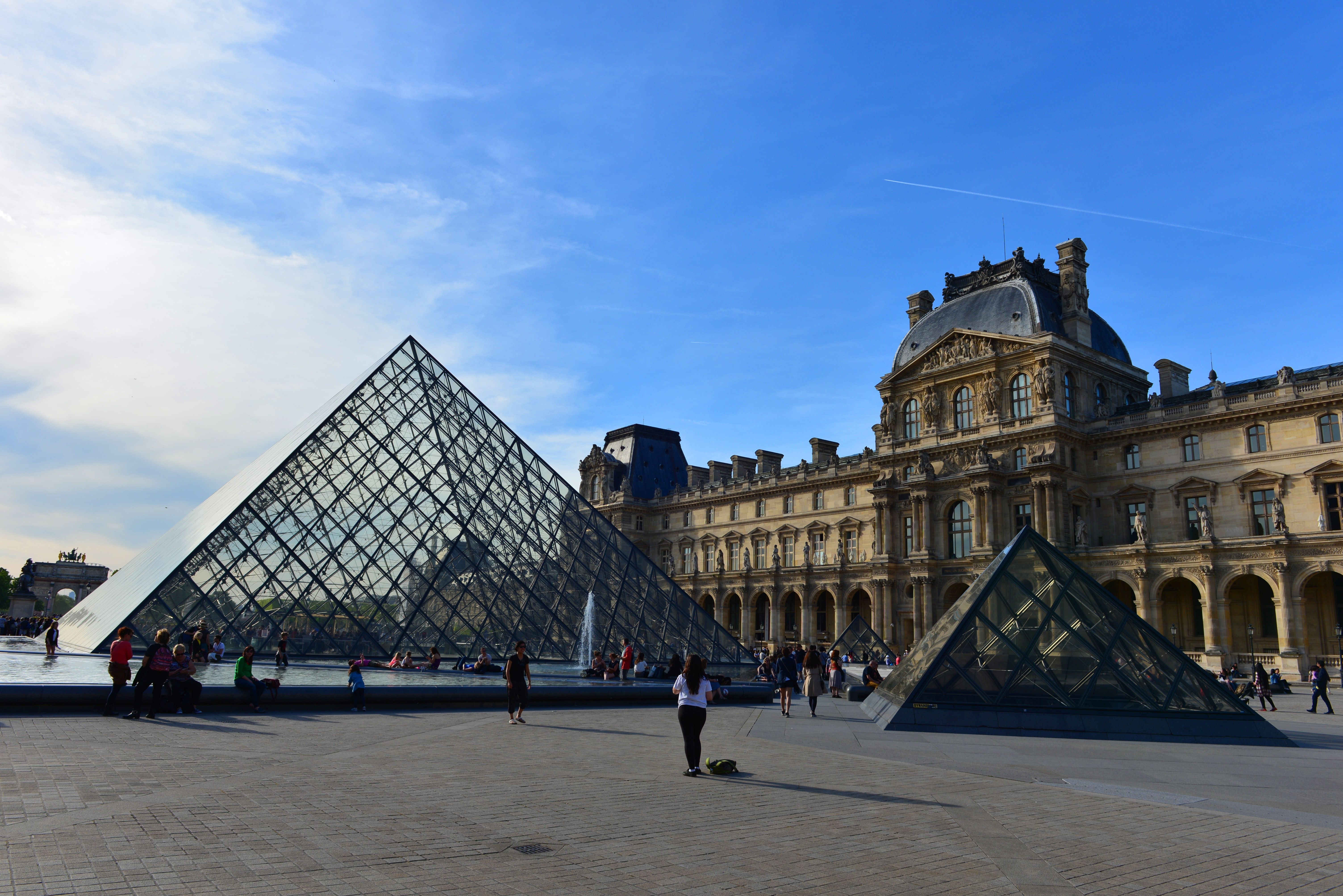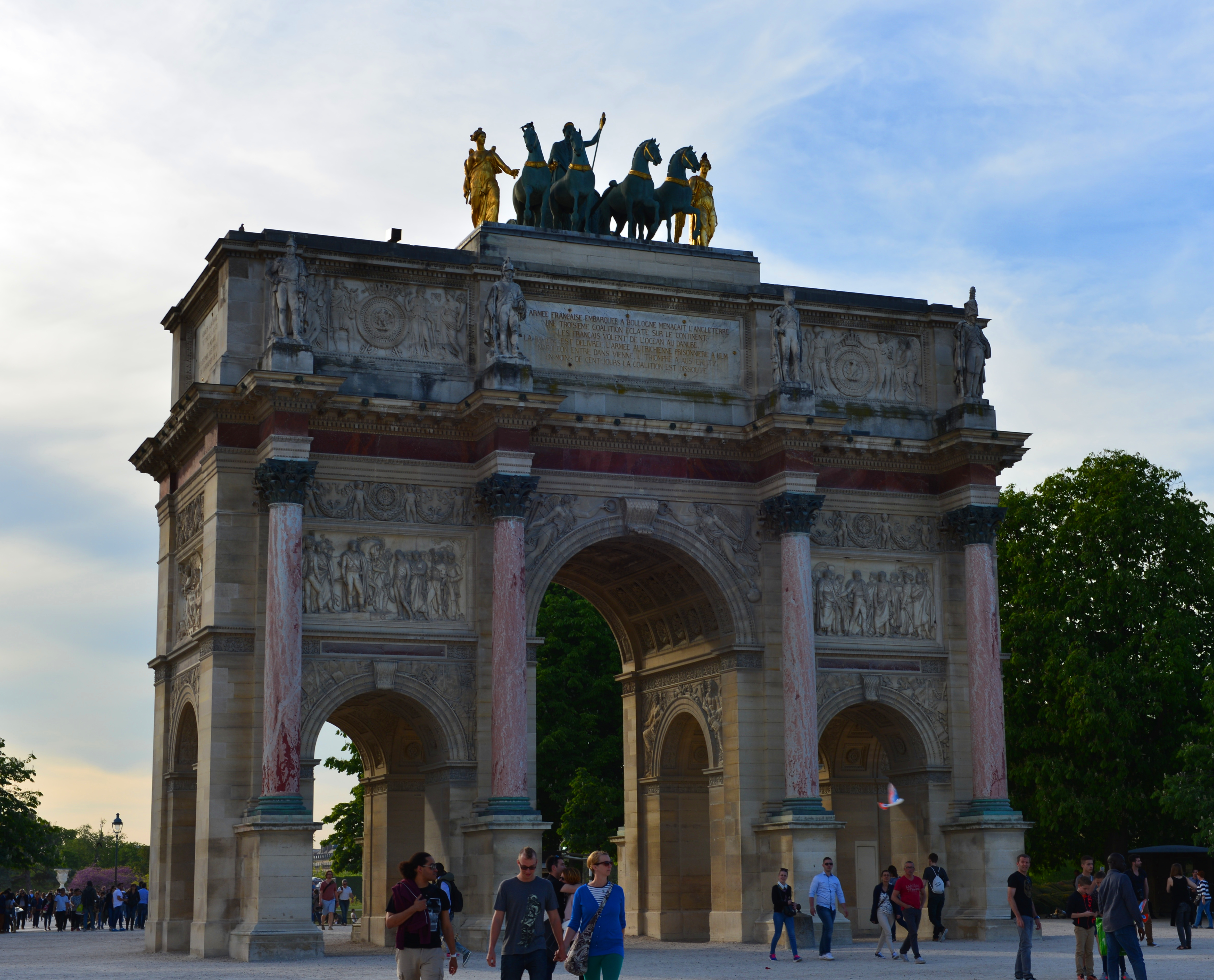 我们沿着塞纳河右岸步行到罗浮宫广场,从外面穿过罗浮宫博物馆和卡鲁索广场,来到小凯旋门。
