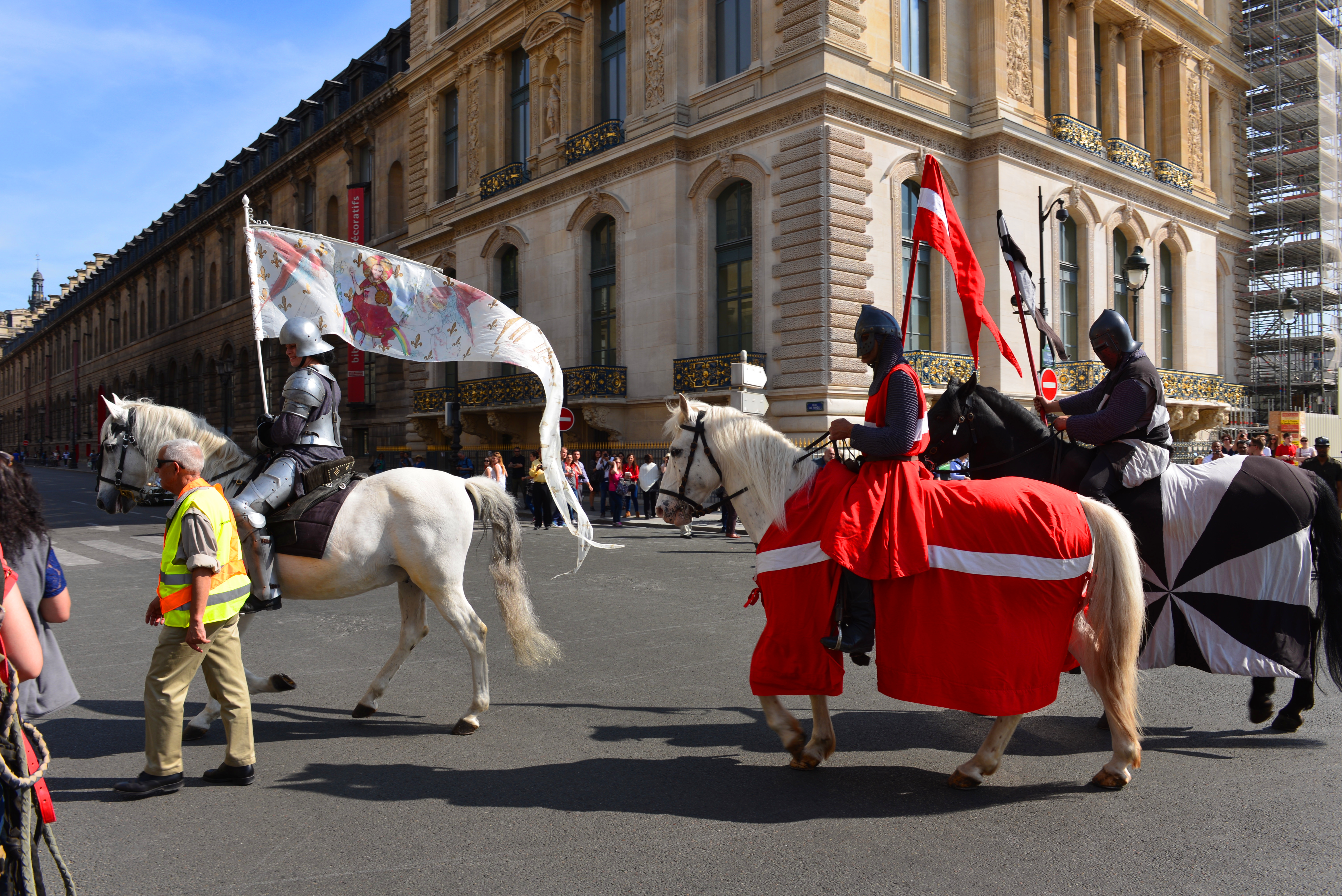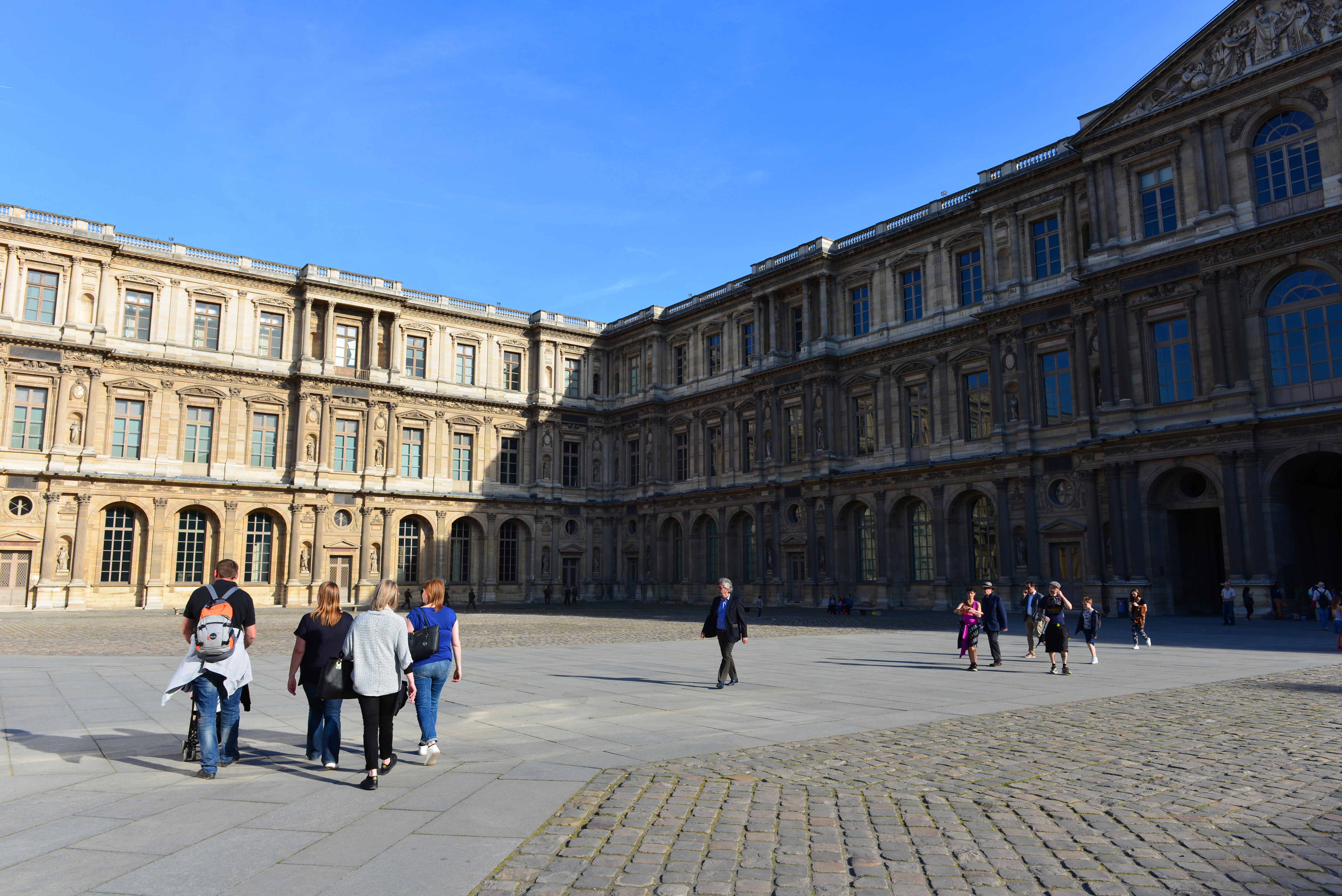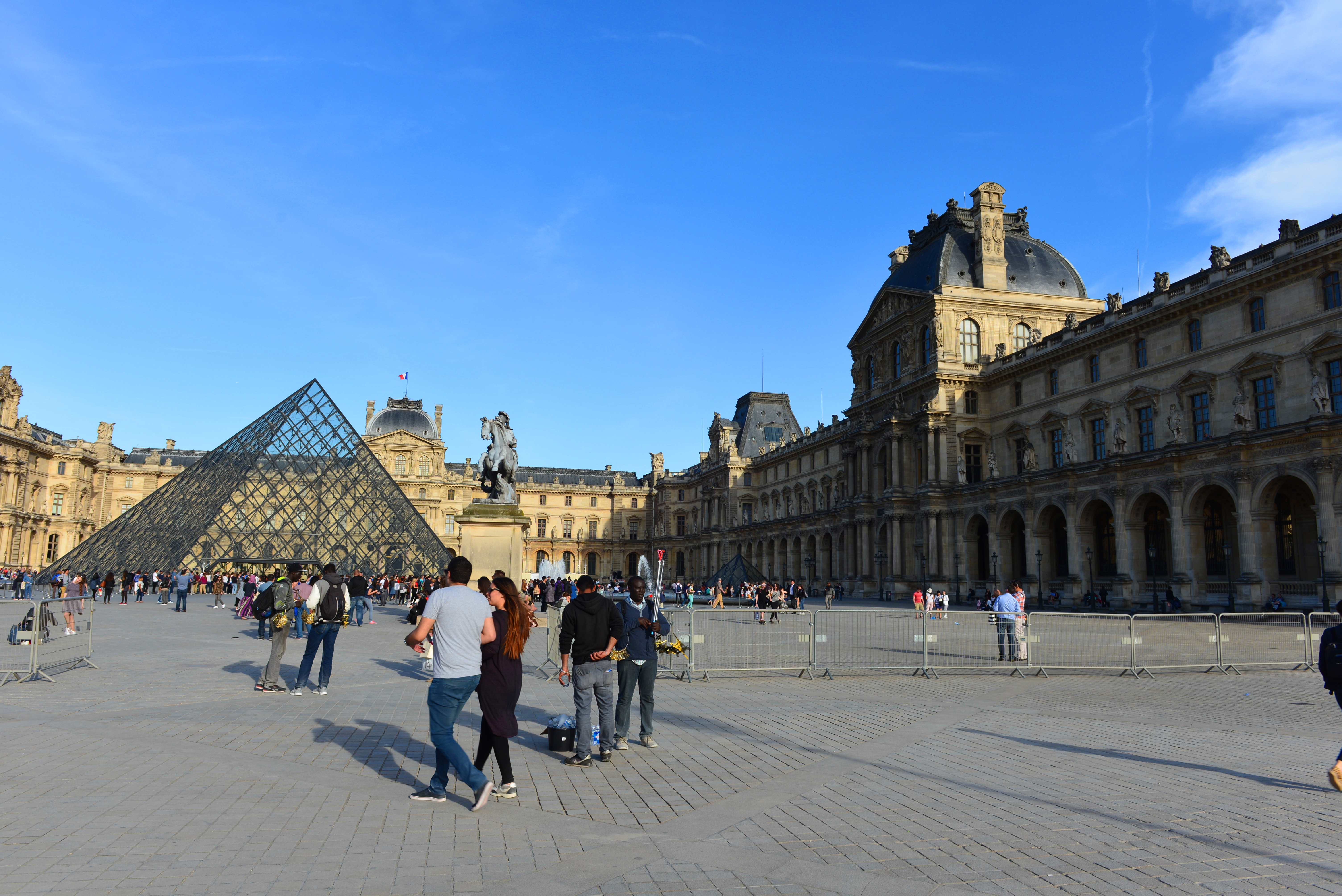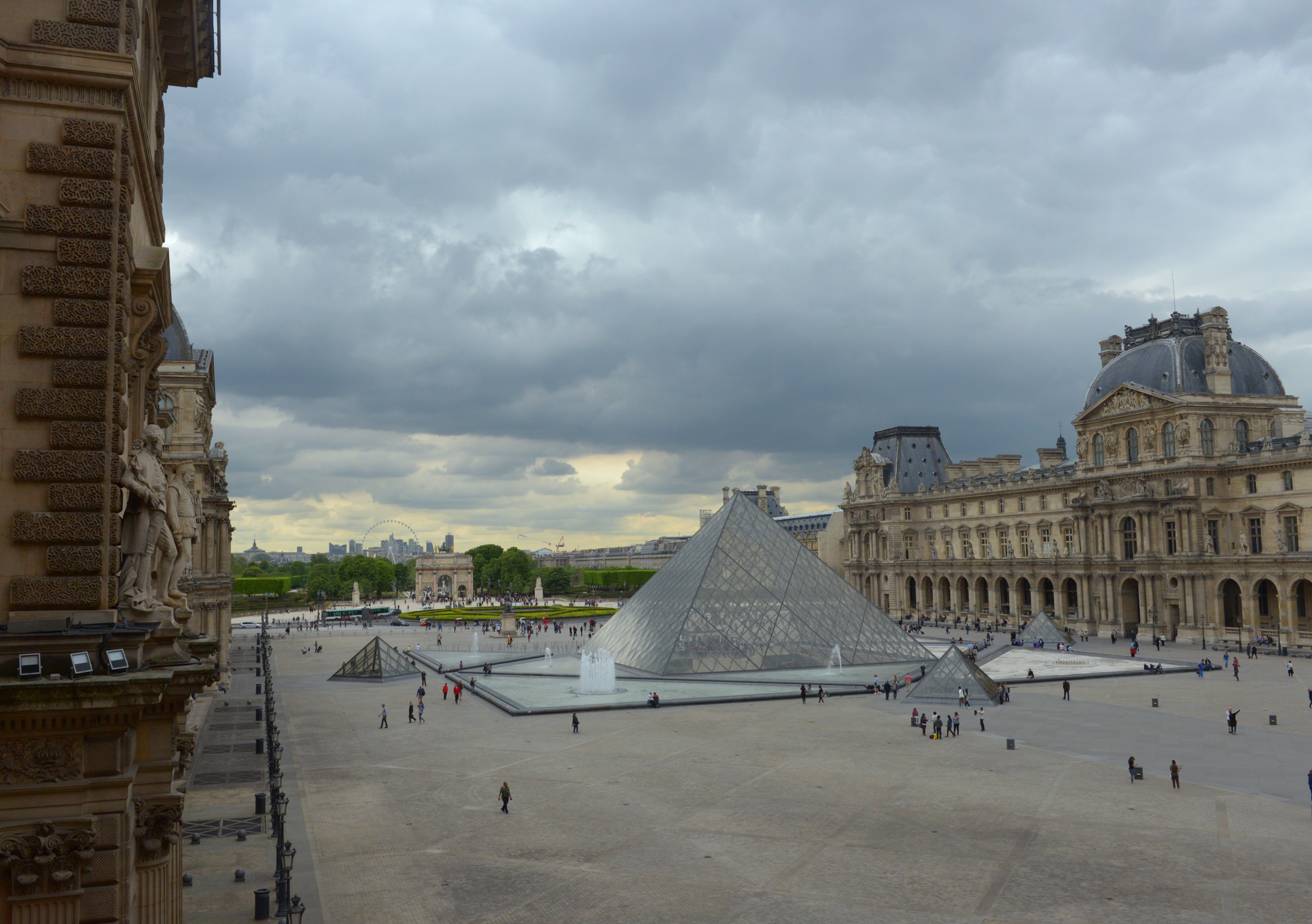 我们沿着塞纳河右岸步行到罗浮宫广场,从外面穿过罗浮宫博物馆和卡鲁索广场,来到小凯旋门。