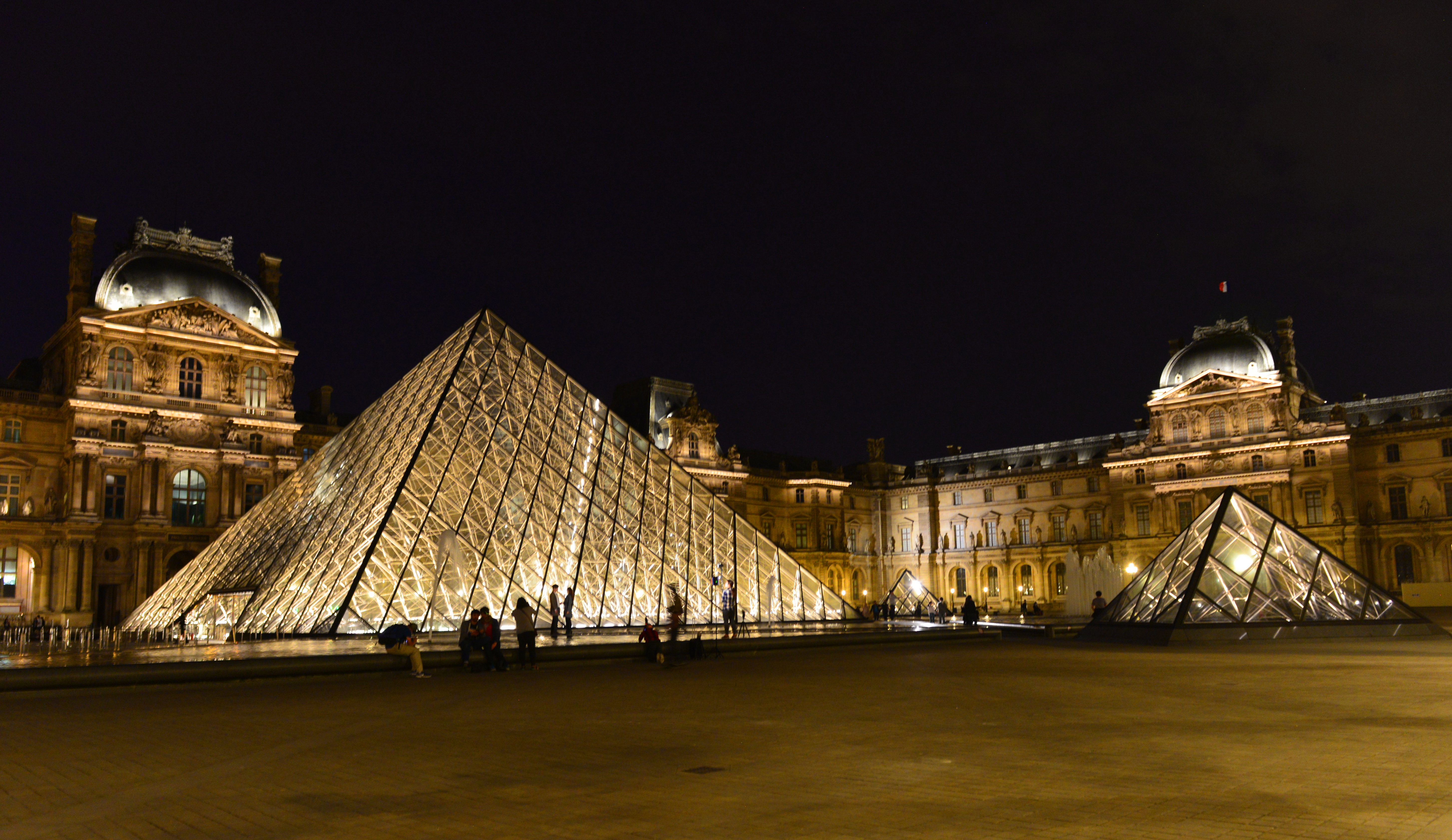 饭吃好了,人也休息好了,回到酒店实在无事可做,于是晚上9:30左右时,我们动身前往卢浮宫广场玩,顺带拍些卢浮宫的夜景。返回酒店时已经近午夜时分。