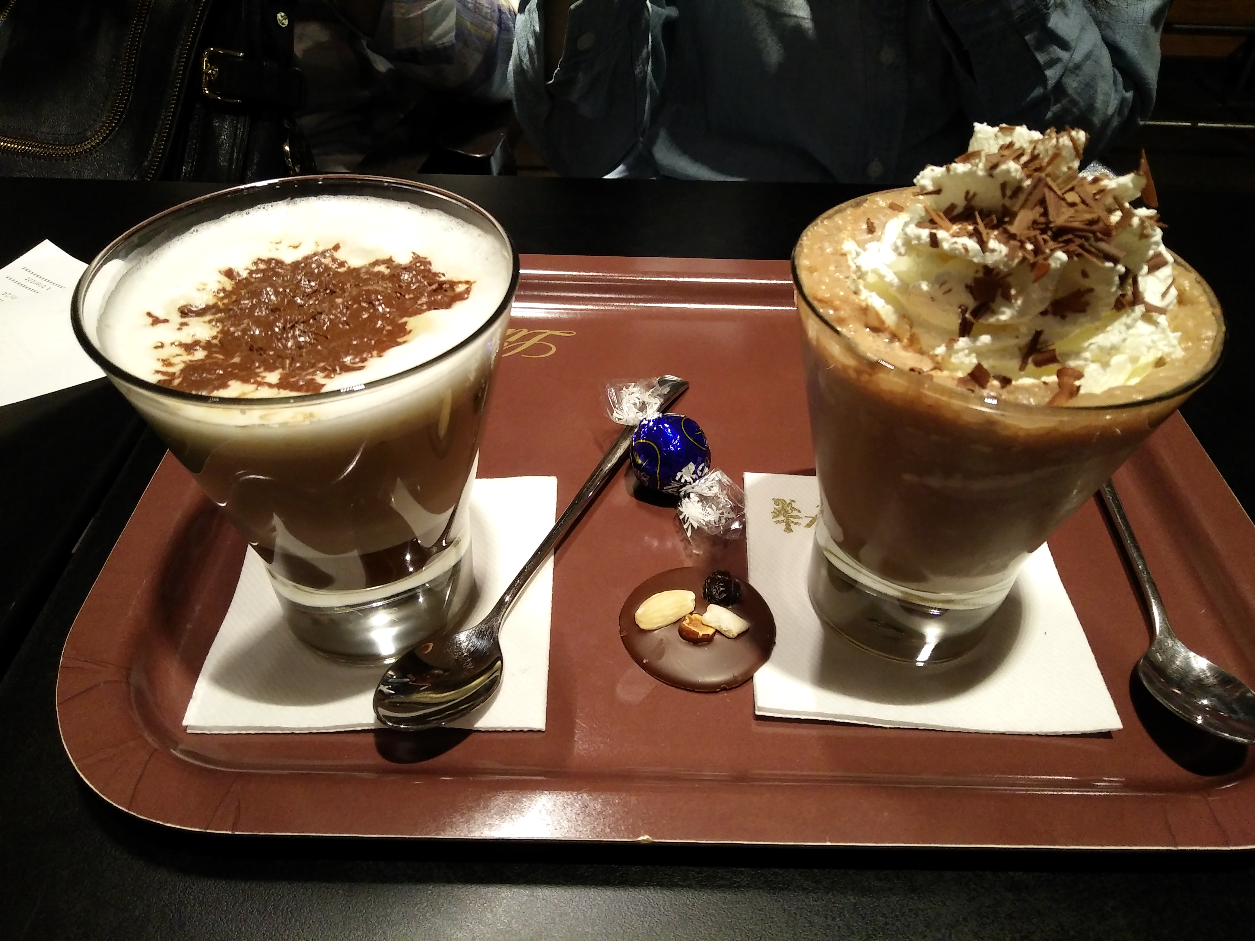 从老佛爷百货出来后,我们去歌剧院后面的瑞士莲巧克力店买巧克力,以便回国时送给亲戚朋友们。当然,当场品尝热巧克力是必不可少的内容。