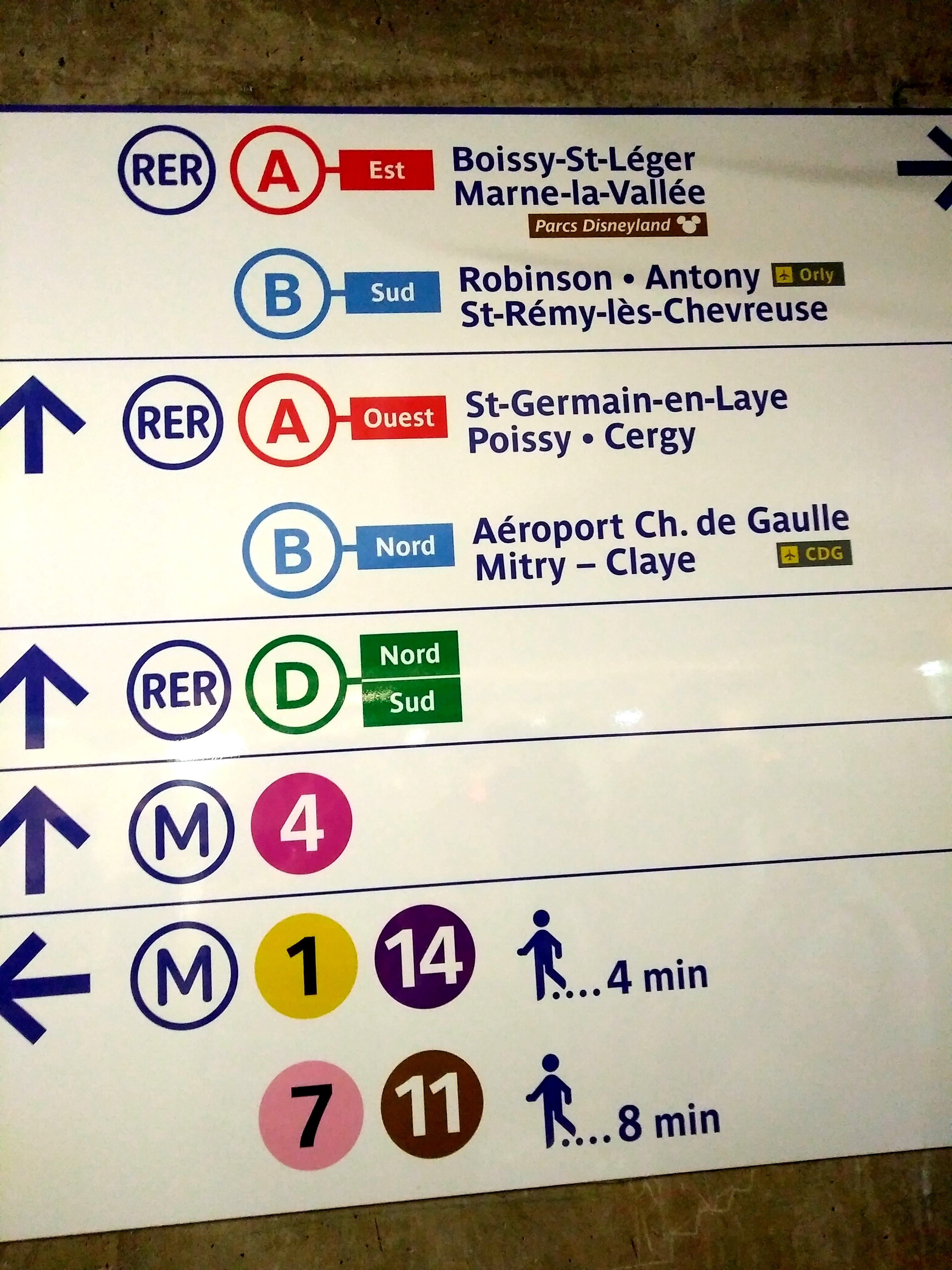 目的地为Chacirctelet-Les-Halls(夏特莱)。RER B线连接巴黎夏尔戴高乐机场与巴黎及其市郊。