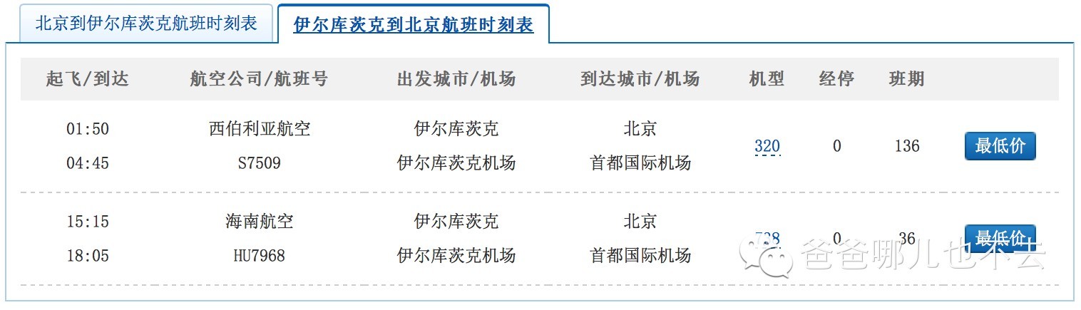 北京直飞伊尔库茨克,有两家航空公司供选择:海南和西伯利亚。