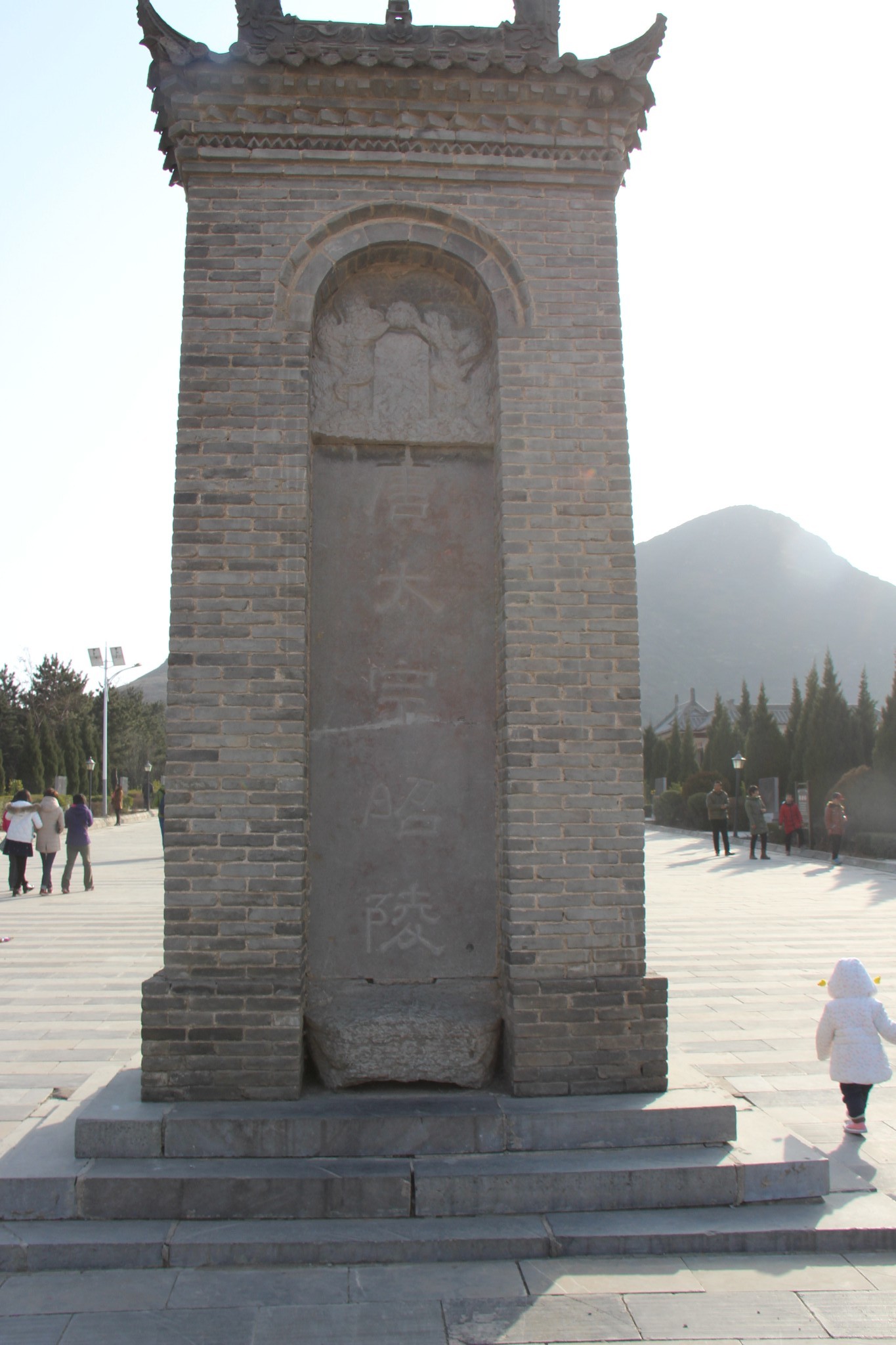 登上祭坛是东西阙遗址,下方排列着历代帝王祭祀李世民的石碑。