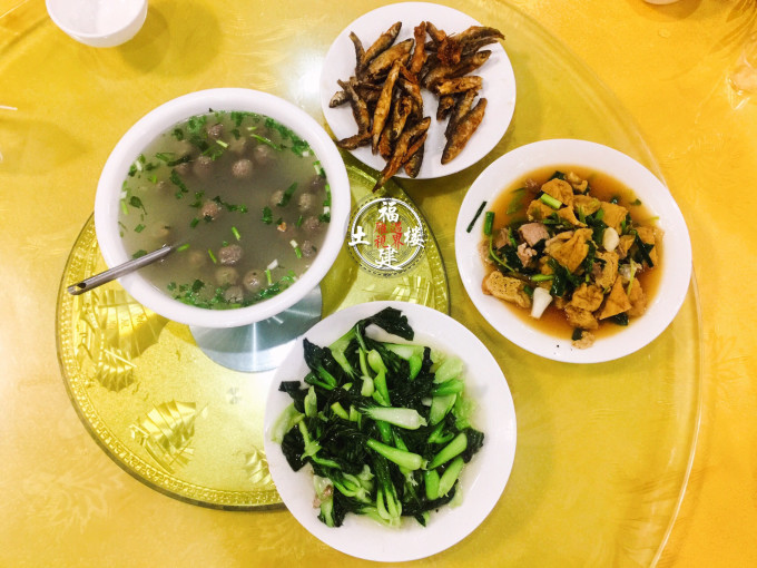 感觉这里的饮食口味比较清淡的,牛肉丸汤、炸小鱼、焖豆腐、青菜三菜一汤共140。