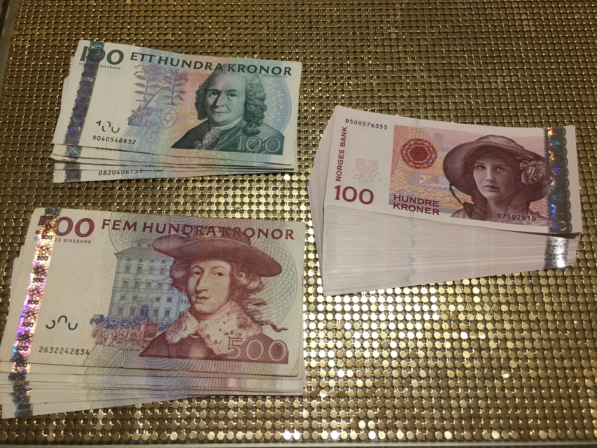 右边的瑞典克朗是老版,今年6月就不能用了。