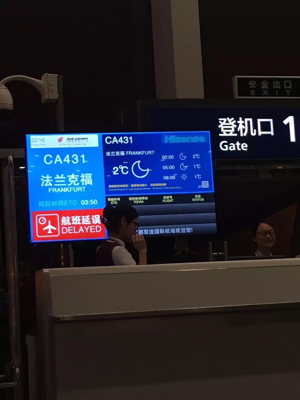 出行途中避免不了出现些一些意料之外的囧事,这不,就被我们就遇到了!6月28日,原本我们早早的就到了机场,换好登机牌,找到登机口,然后就看到了航班延误这一幕,心情顿时比较down。哎,这段时间的天气时常不稳定,导致飞机经常晚点,SO,我们要在机场多待几个小时,1:30起飞,推迟到3:50,我们要如何打发这无聊的时间?之后不久就接到携程打来的电话,中间只有一个小时中转的时间,问我们是否来得及,如果来不及可以去柜台办理免费改签,德国机场很大,赶不上飞机的可能性非常的大,我顿时后悔没有买直飞的机票。