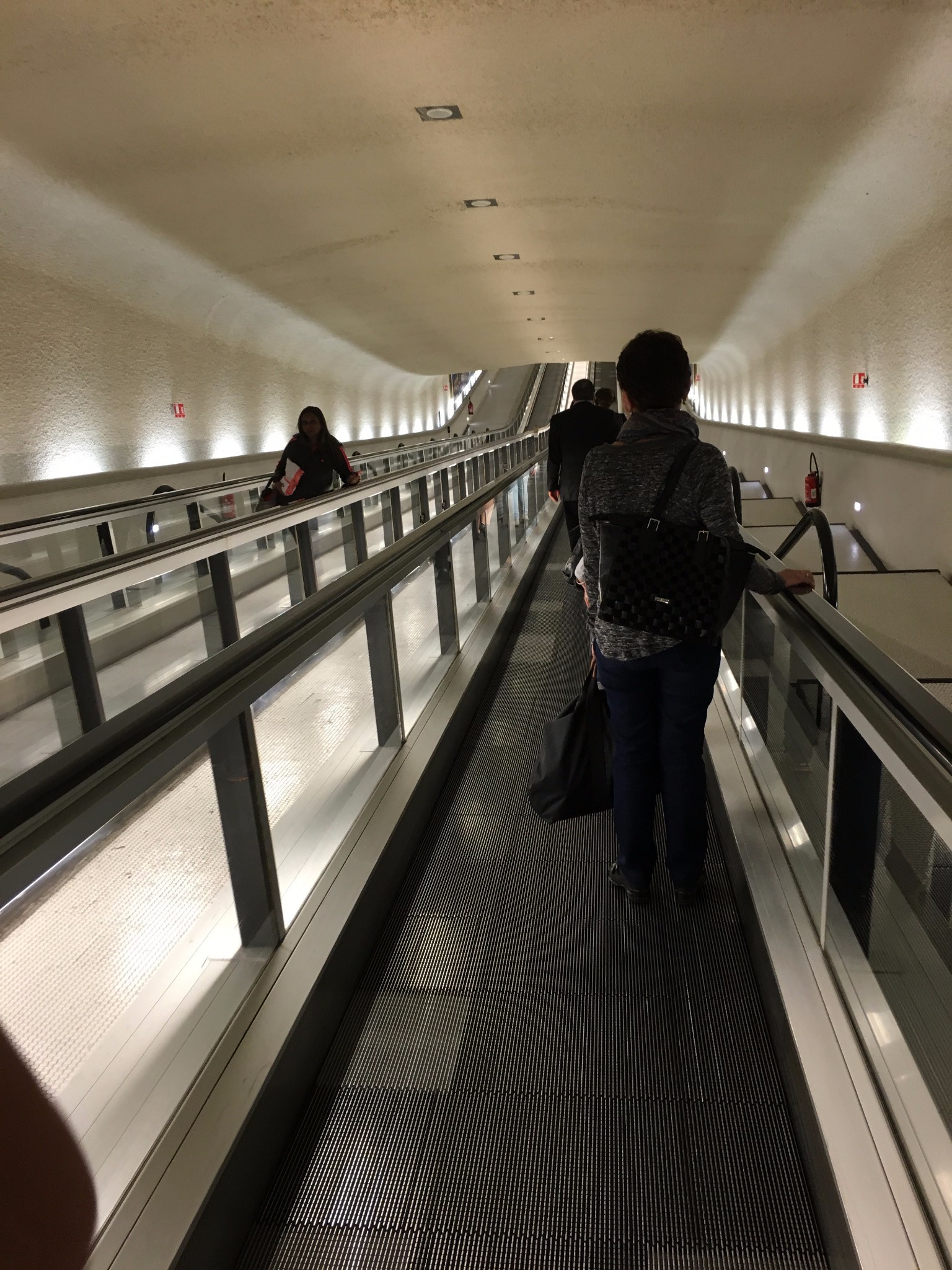 然后拿着行李票到问讯处咨询了一下,法国美女说让我们到航班对应的转盘去找,找不到再回去找他们,庆幸的是,我们居然找到了,所以这一段还算顺利,没有朋友那么糟糕。