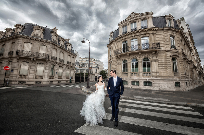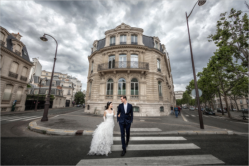 拍完凯旋门,马上就成了乌云密布,老公之前在香榭丽舍大道工作过,有很多认识的朋友,所以为了避免尴尬,我们没有去香榭丽舍拍摄,这是香榭丽舍旁边的一条街道,我们也觉得挺美的!