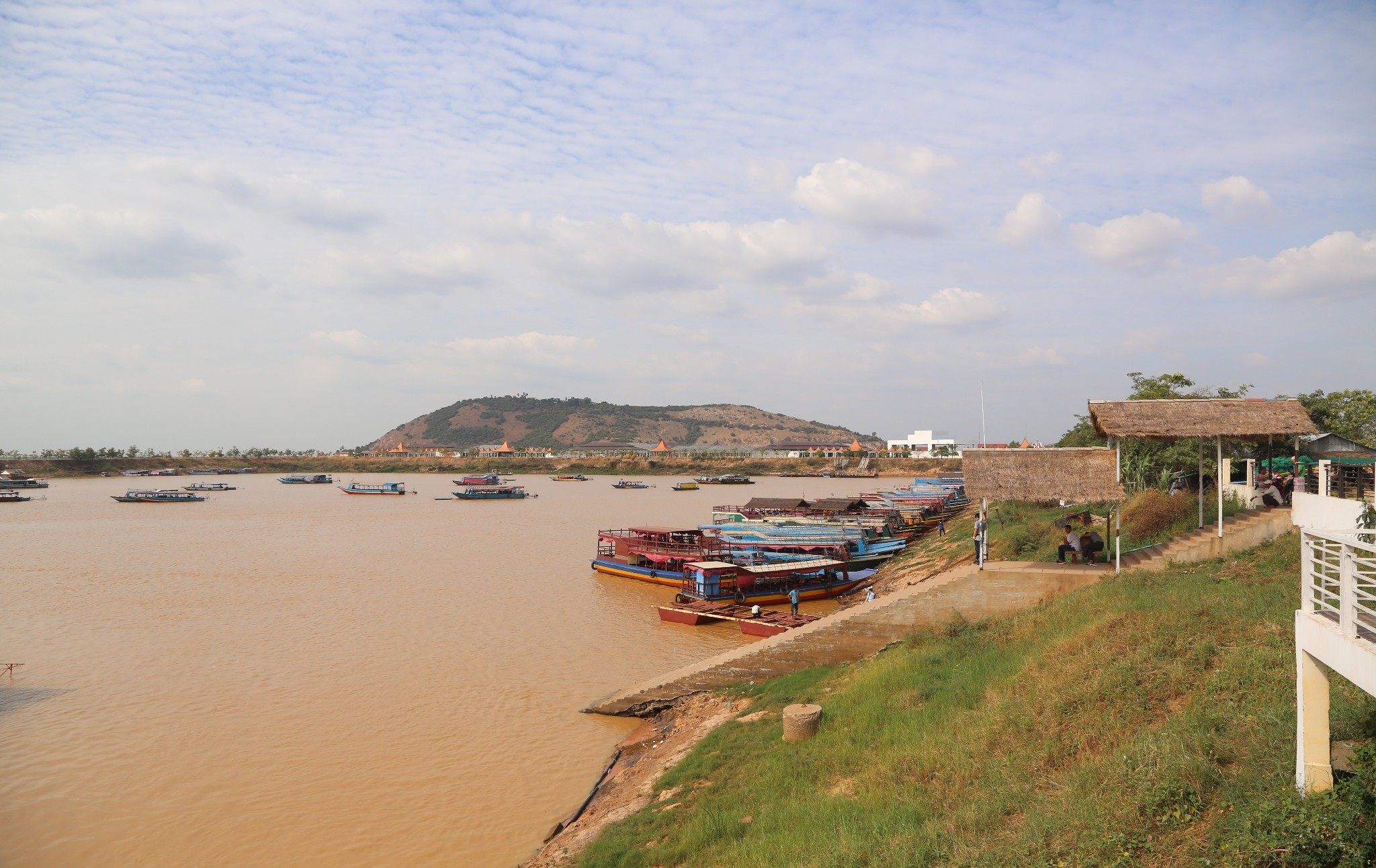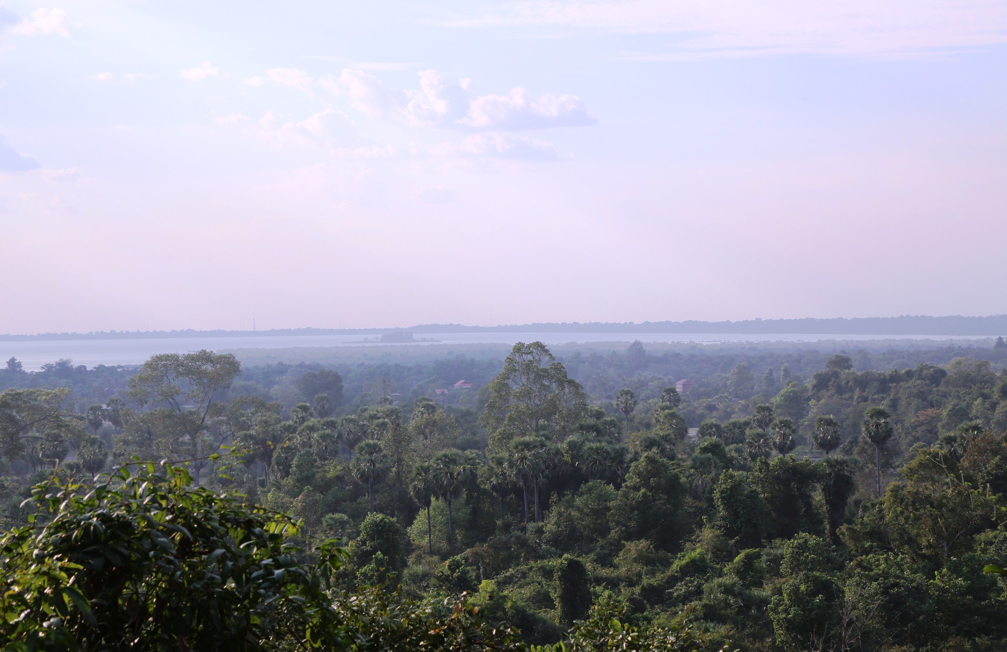 远处可以看到的洞里萨湖和浩浩淼淼的湖水。