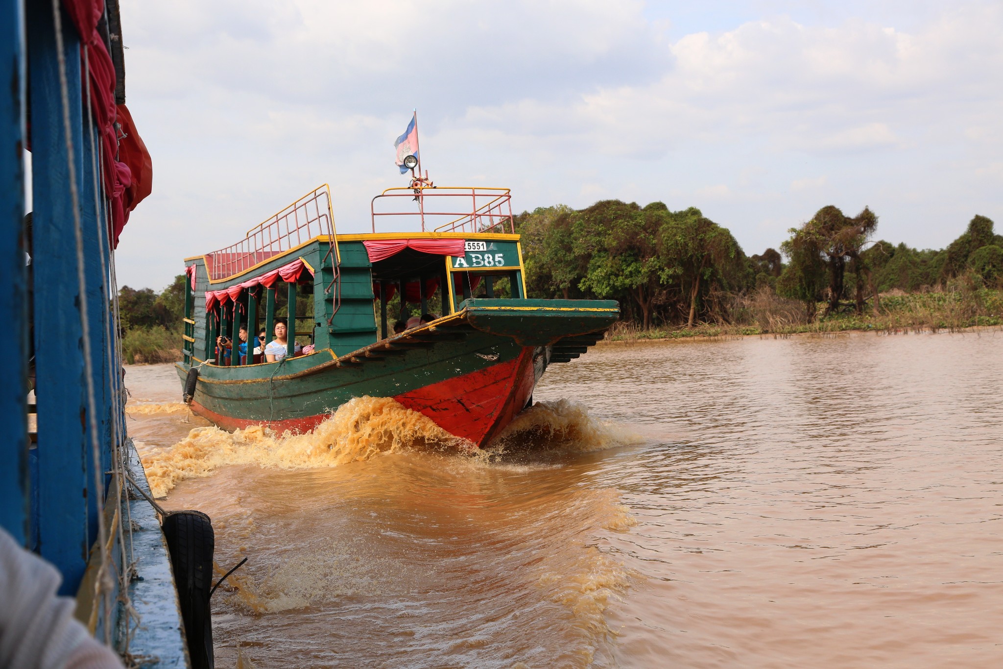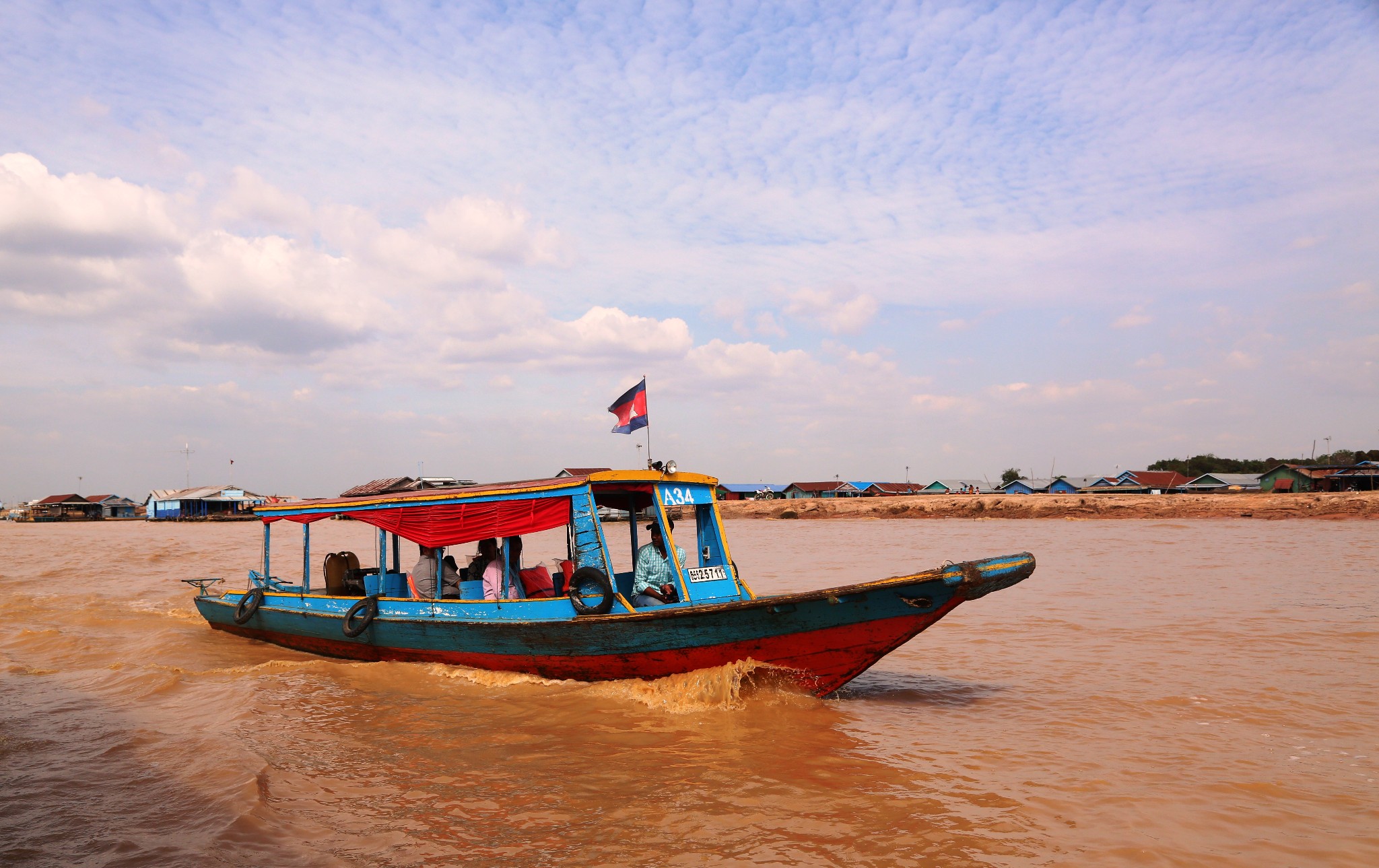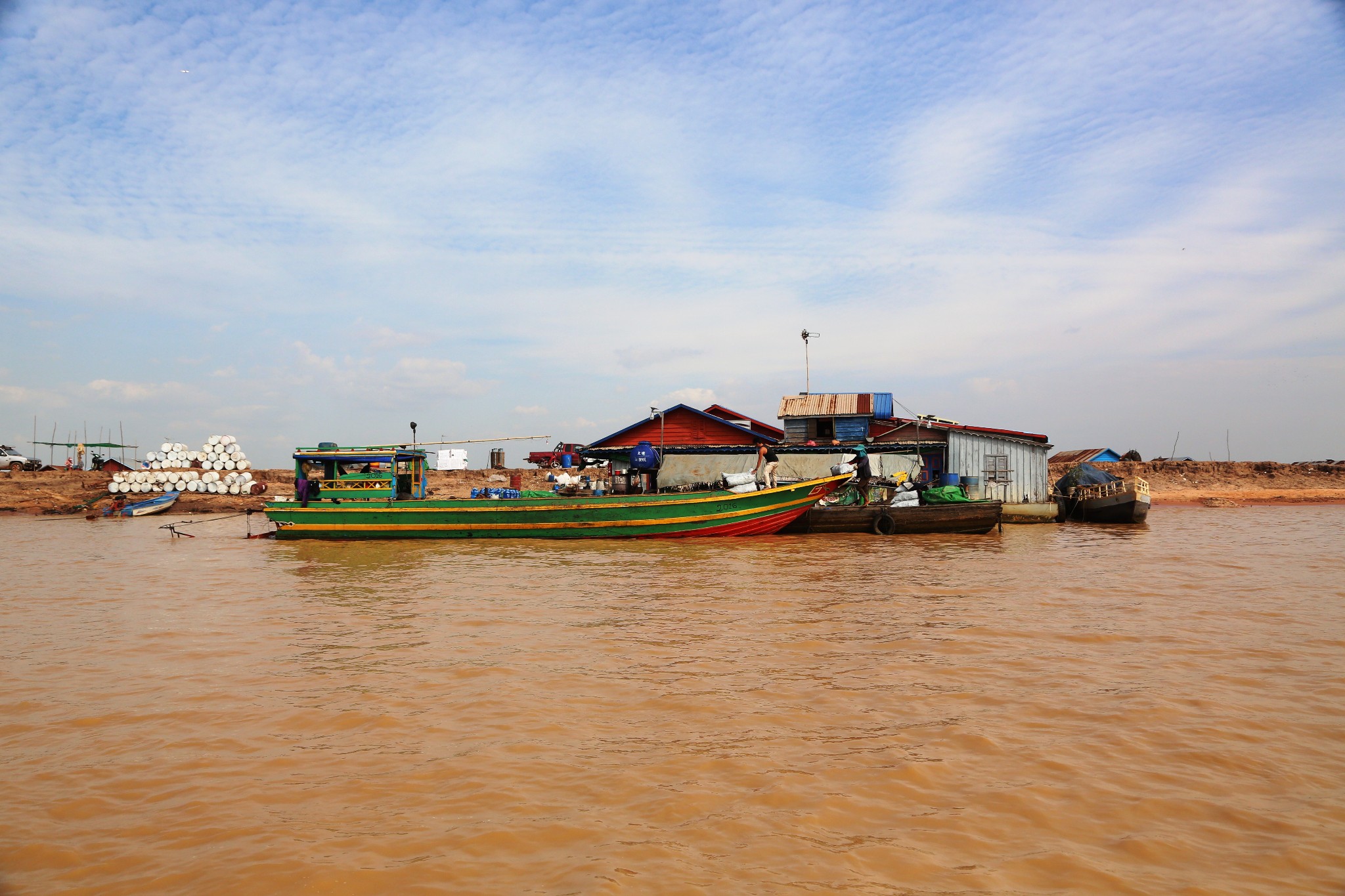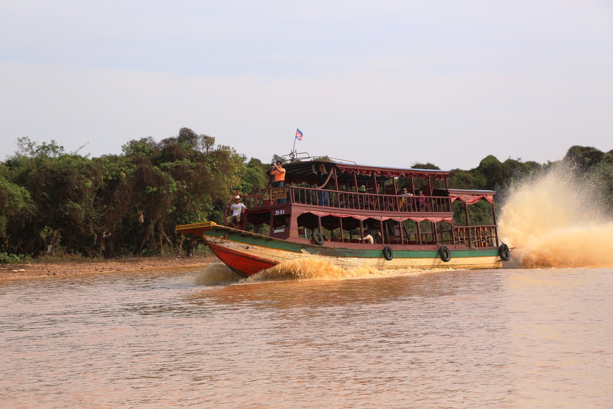 坐上了飞快的游船,混浊的水花扑面而来。洞里萨湖是世界第三大淡水湖。千百年来,一代又一代的柬埔寨人在这里安居乐业。因此,也被誉为生命之湖。