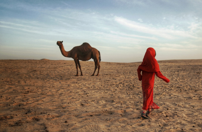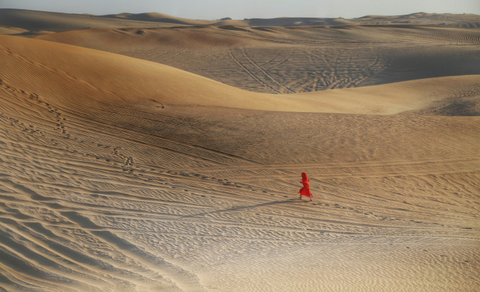 车上放着Sting的老歌,被飘渺的阿拉伯吟唱包围着,一切感官的记忆瞬间被唤醒:脚趾间的细沙温柔微烫,空气被炙烤得冒烟,只差一撮孜然。远处沙丘上,女孩儿一袭红袍,赤着脚飞奔,似一朵肆意疯长的野玫瑰,娇艳欲滴,芳香慑人……这一切,是歌中所唱,还是我亲身经历?