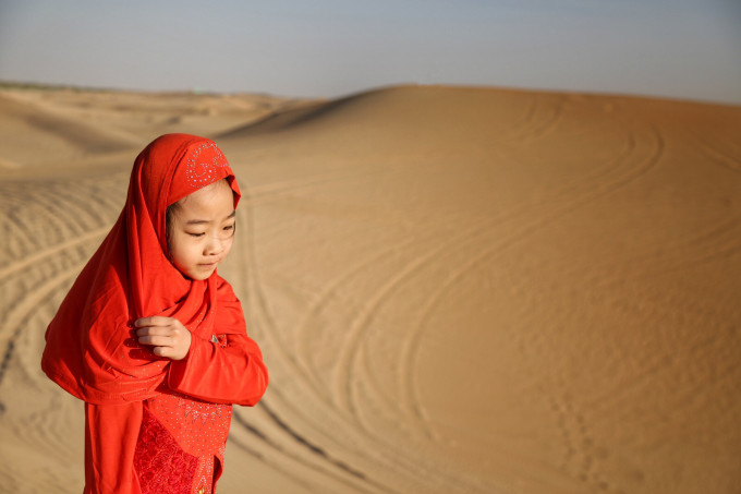 在阿布扎比的酒店里,安排了一次沙漠行程。对孩子来说,没什么比放肆奔跑和骑骆驼,更具吸引力了。望着起伏的沙丘,红衣女孩在骆驼背上一颠一颠的,就是那一刻,我想到了那首老歌,Desert Rose。