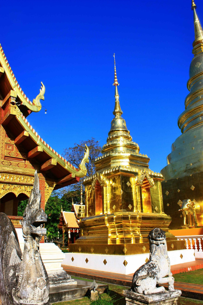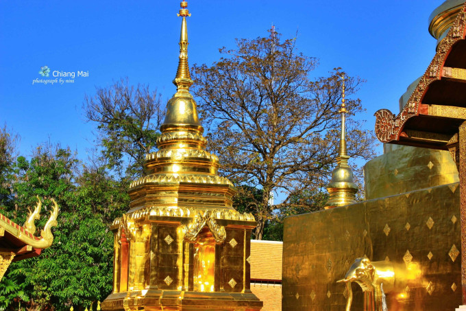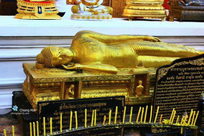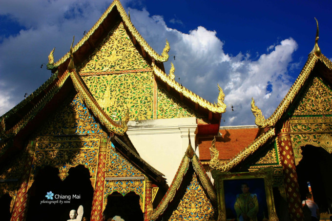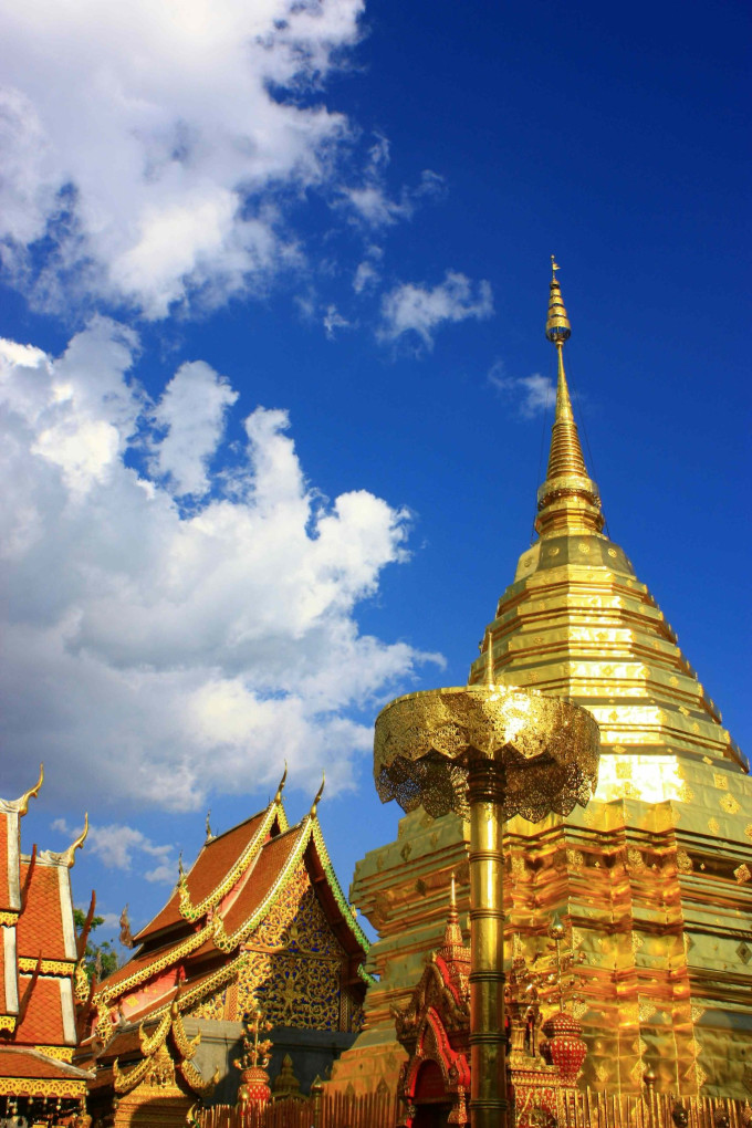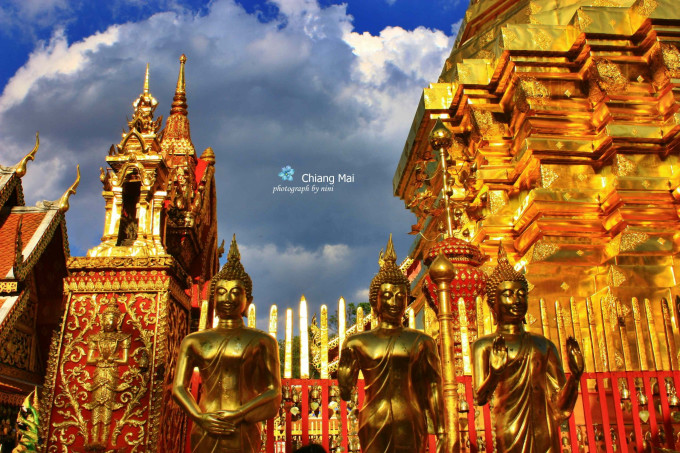 双龙寺,位于素贴山山顶,是泰北最有名的寺院。上面可俯瞰整个清迈市区的景致,里面供奉着释迦摩尼的舍利。我觉得里面一切都是金闪闪的真是好看,另外绿色翡翠的佛像不多见,更为珍贵,这个寺庙人气很足,不过真的值得一看。