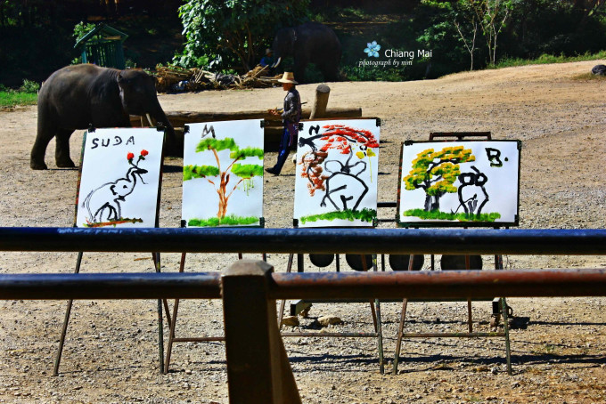 大象真是聪明,除了一般的大象表演节目,这里的大象特长是会画画,虽然每天画得是一样的作品,但能把自己画出来还写上名字,这个智商也很高了。